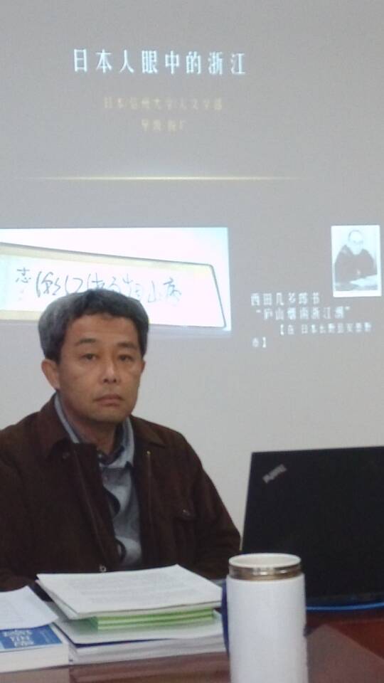 2015年3月11日下午两点半,日本信州大学人文学部早坂俊广教授到我校开展主题为“日本人眼中的浙江”的讲座。讲座在17号楼401举办,吸引了数十位老师、同学前来参加,会议室内座无虚席。本次讲座由小黄书 范立舟老师主持。