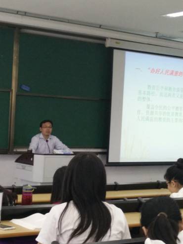 本次课程主题是“扩大教育公平,提高教育质量,办好人民满意的教育”。首先,龚老师指出教育公平和教育质量是办人民满意的教育基本路径,这两者之间密不可分。接着,老师用幽默风趣的语言,生动形象的事例提出了当今教育公平存在的主要问题,例如资源配置不均导致的城乡差距、地区差距等等。老师具体说明的择校问题更是让在座的同学产生了一些共鸣。最后,老师精彩的论点更是赢得了同学们的掌声。
