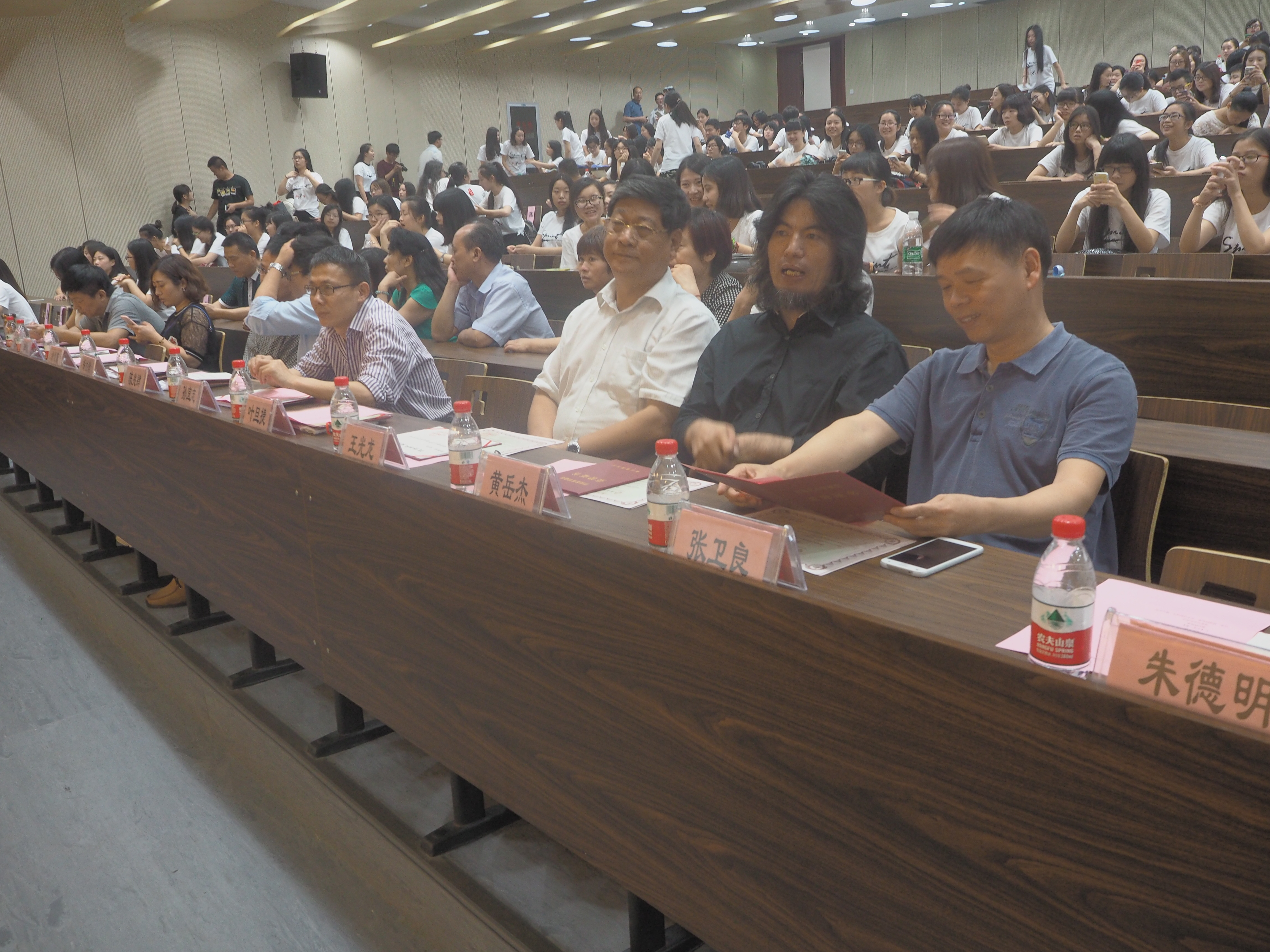 杭师见证了我们的努力,记载了我们的辉煌。小黄书 党委书记吴兴农宣读表彰决定,宣布了省、校、院级优秀毕业生,并颁发证书,共享优秀人文学子精彩的瞬间。走出校园,我们与更多人相遇,但校园里的日日夜夜却是我们的独家记忆,难以忘怀。接着举行了校友联系人的受聘仪式,由各班班主任颁发证书。接下来毕业生代表向学校献礼,礼物是一面正身镜。一撇一捺可树人,一铜一镜正衣冠,这面镜子是校友对人文后辈的期望。然后,家长们接受了现场的采访,远道而来的家长,亲眼见证了孩子们毕业的瞬间。