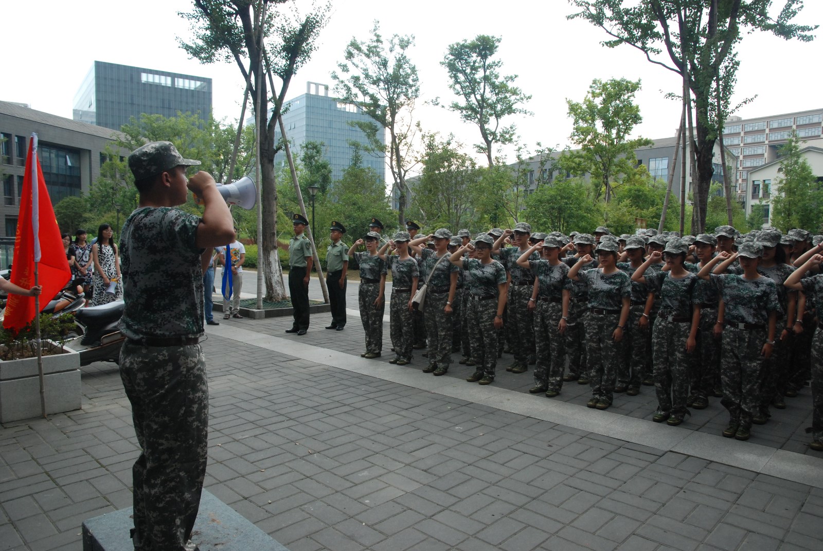 接着一营营长发表讲话,营长强调,从此刻起,不会把大家当做学生,而是看做军营的学员。他指出,第一要服从指挥,要按照学院和整个团营的统筹行动。第二服从命令,听从教官和指导员的管理;第三,严格训练,希望大家互相学习。他也谦虚地表示希望能从莘莘学子身上感受学院风范。