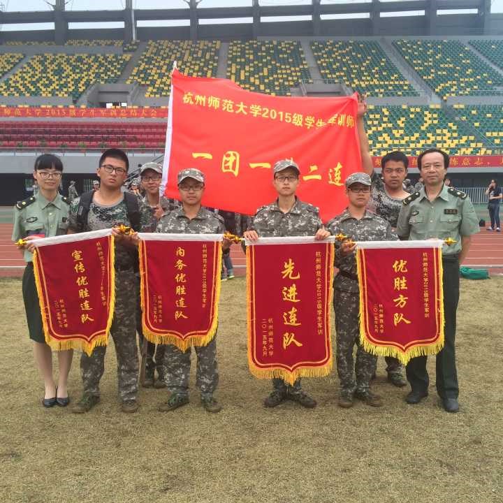9月20日上午,杭州师范大学2015级学生军事训练总结大会上,人文新生学子奋勇拼搏,为学院赢得了多项荣誉,荣获“优秀方队”、“先进连队”、“宣传优胜连队”、“内务优胜连队”,加之在先前新生军训红歌大合唱比赛斩获的一等奖和三等奖,本年度军训可谓获得了“大满贯”。这些成绩是教官用心指导、学生刻苦训练的结果,也是院领导关怀帮助、辅导员、班主任的辛勤付出的结果。希望2015级新生们继续加油,在接下来的学习、生活中续写新的辉煌。