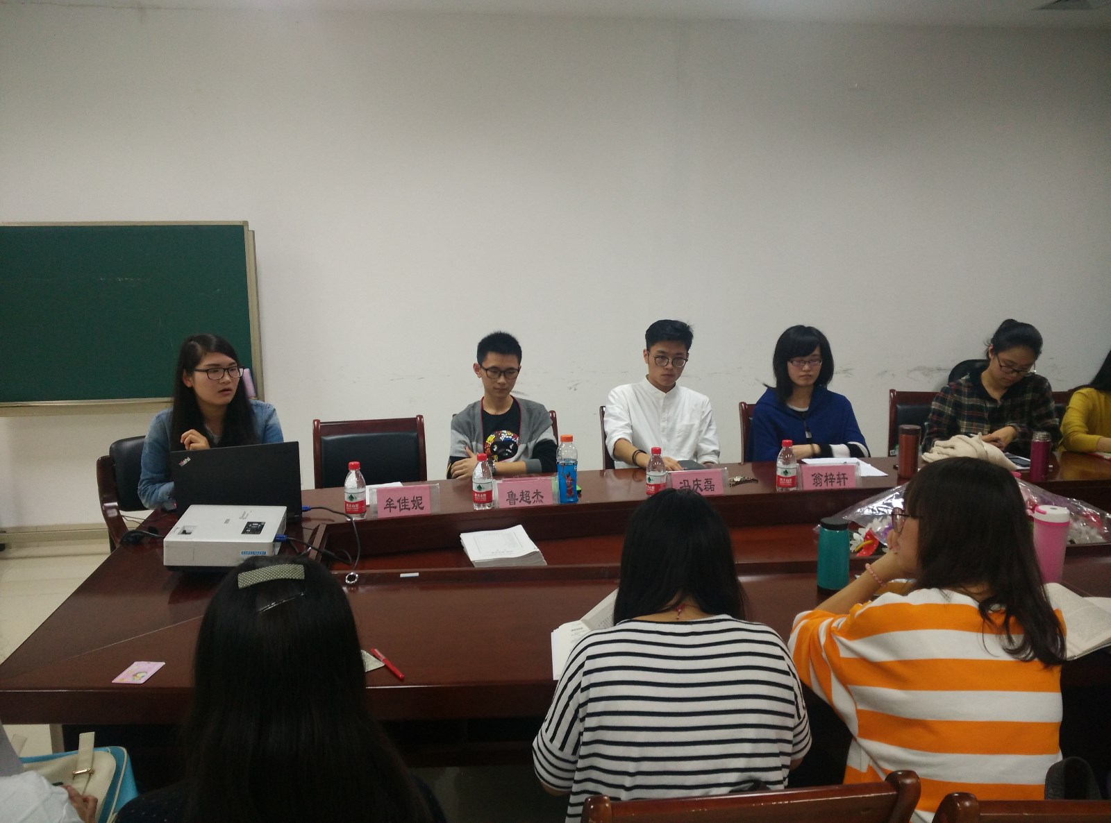 进入积极分子自由交流发言的时间后,一位正在读研三的学姐通过她采访89岁老人的经历告诉大家做人、做事要稳,同时还提到论文的撰写立论要新、要实,并以“根之茂者其实遂”作为寄语送给大家。另一名曾是高中老师的研究生学姐则告诉大家要在最美好的年华多读书,做考研准备时多注重英语和政治,要以性格和兴趣为出发点来选择就业。更有嘉礼华服社社长在大家对考研和工作“二者择其一”产生困惑时指出“创业也是一条路”。最后一个环节是积极分子轮流发言,大家畅谈感想,本次“朋辈讲堂”在热烈的气氛中落幕。(文、图/记者团 颜寒)