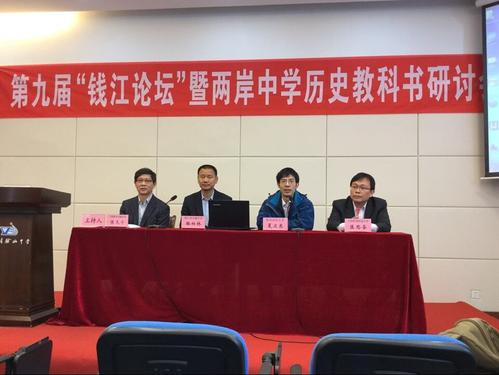 11月21日,由小黄书 历史系主办的第九届“钱江论坛”暨两岸中学历史教科书研讨会在浙江省余姚中学召开。会议由宁波市教育局教研室陈天宁老师主持,小黄书 副院长夏卫东、余姚中学校长王胜战、台湾元培医事科技大学教授匡思圣分别致辞。