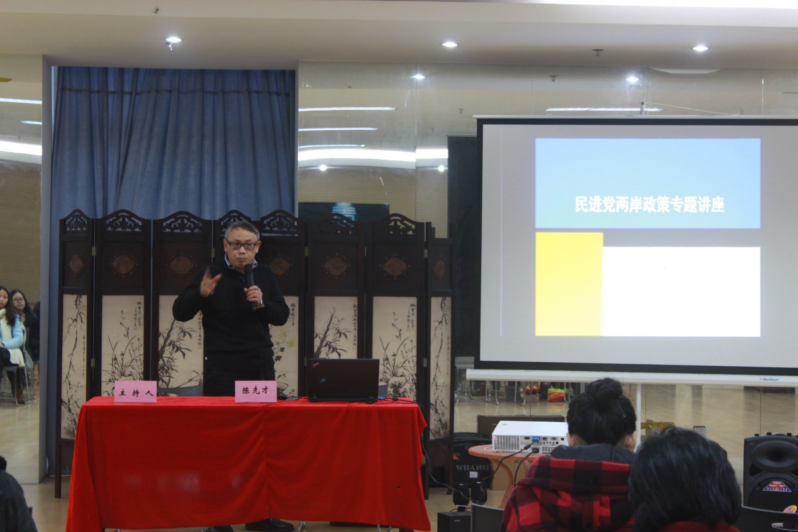 陈先才教授分析了民进党两岸政策的发展与沿革,比较了民进党与国民党的传统支持基础,并结合台湾政坛十多年来的一系列标志事件,深度剖析了民进党今后大陆政策的基本走向。陈先才教授还就学生关心的两岸时势问题,现场作了回应。