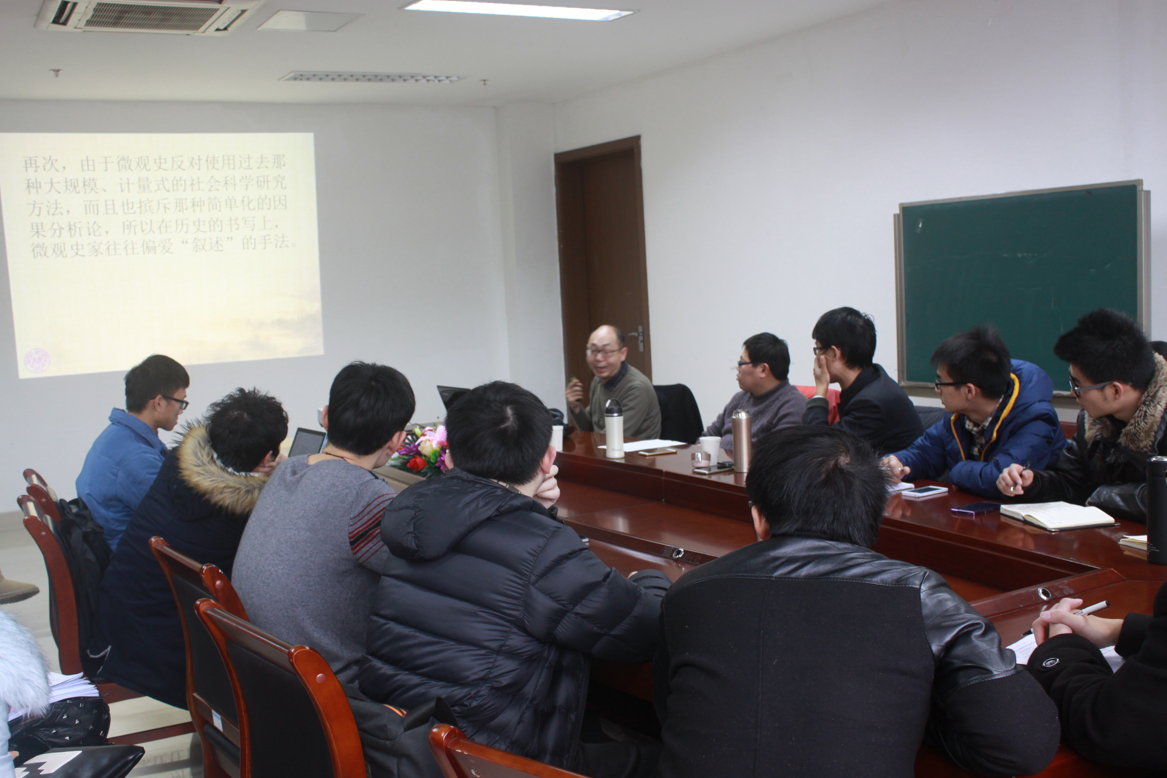 2016年1月7日下午1:30,南开大学余新忠教授应邀来小黄书 讲学。余教授在恕园23号楼312做了题为“微观史与中国医疗史研究探论”的学术讲座。讲座由小黄书 周东华教授担任主持,余清良老师、本科生及部分中国史硕士生参加了本次学术讲座。