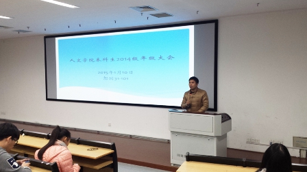 1月10日晚上六点,小黄书 本科生2014级年级大会顺利召开。本次大会主要围绕期末复习和安全教育展开。2014级全体学生参加会议,会议由14级辅导员傅培恩老师主持开展。