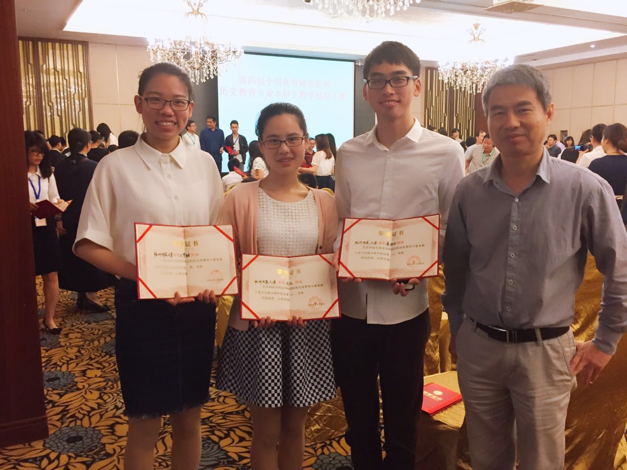 此次竞赛分为说课和讲课两种形式,规定每个学校派出三位同学参赛。小黄书 历史系参赛的葛杨林、周欢、王梦雅三位同学均获佳绩。三位同学在比赛过程中认真对待,积极备课,表现出优秀的师范生素养、扎实的专业功底和出众的教学技能,其中葛杨林同学荣获说课一等奖、周欢同学荣获说课二等奖,王梦雅同学荣获讲课二等奖,丁贤勇老师荣获“优秀指导教师奖”。