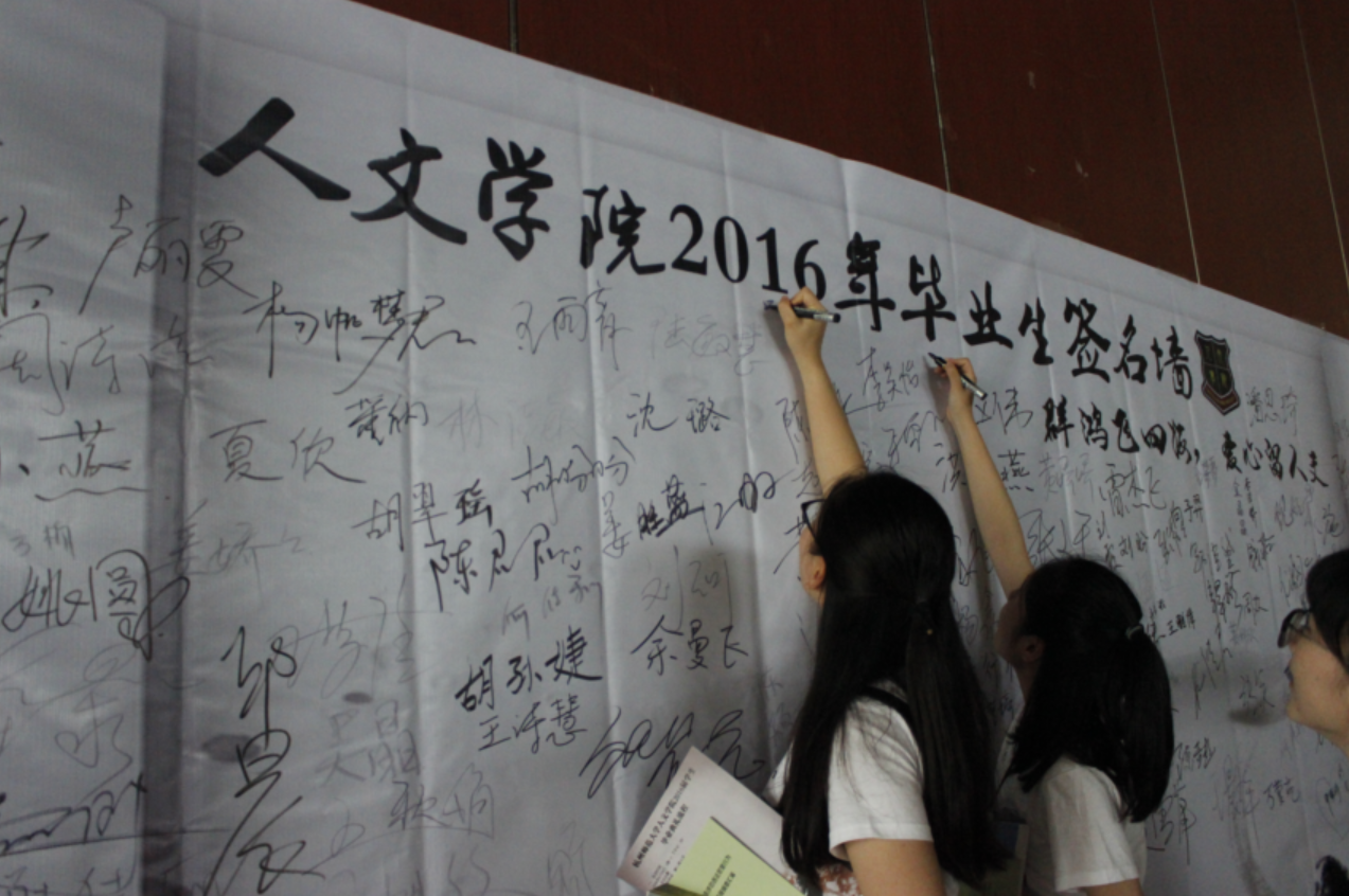 毕业典礼正式开始前,毕业生们在外场纷纷合影、签名和领取毕业礼品。典礼开始后,小黄书 院长洪治纲为毕业生致词。洪院长希望毕业生迈着青春的步伐,勇敢地踏上新的人生征程,同时,希望毕业生做一个有情怀的人、有思想的人、心怀浪漫的人和有担当的人。院党委书记吴兴农宣读优秀毕业生表彰决定,学院老师为毕业生颁发获奖证书。