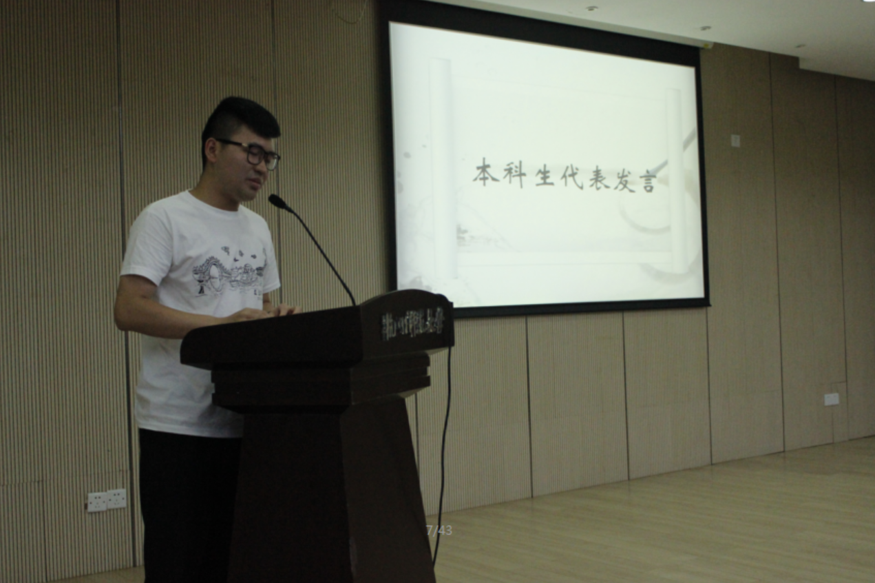 毕业生代表郭振豪和张经洪发言。他们分享大学的时光,感谢学院的培育,展望未来的生涯。教师代表单晓溪教授在发言中说,希望能和毕业生相约十年,毕业后,希望大家保持良好的精神气质,做一件自己喜欢或逐渐喜欢的工作,提高自己的情商系数和提升判断和反思能力。导师代表范立舟教授希望毕业生能保持理性自觉、文化自觉和伦理自觉,毕业后,要保持理性的头脑,学会判断,懂得讲道德。