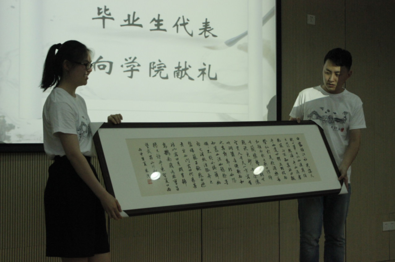 代表发言后,毕业生代表向小黄书 献上自己的书法作品,作为毕业礼物。各班班长展示了各班四年美好的青春记忆,讲述各班的成长历程,在场的观看者不禁流泪。此后,毕业生代表向班主任、辅导员献花,班主任和辅导员一一发表感言。班主任和辅导员向毕业生表达了真挚的祝福和期望。