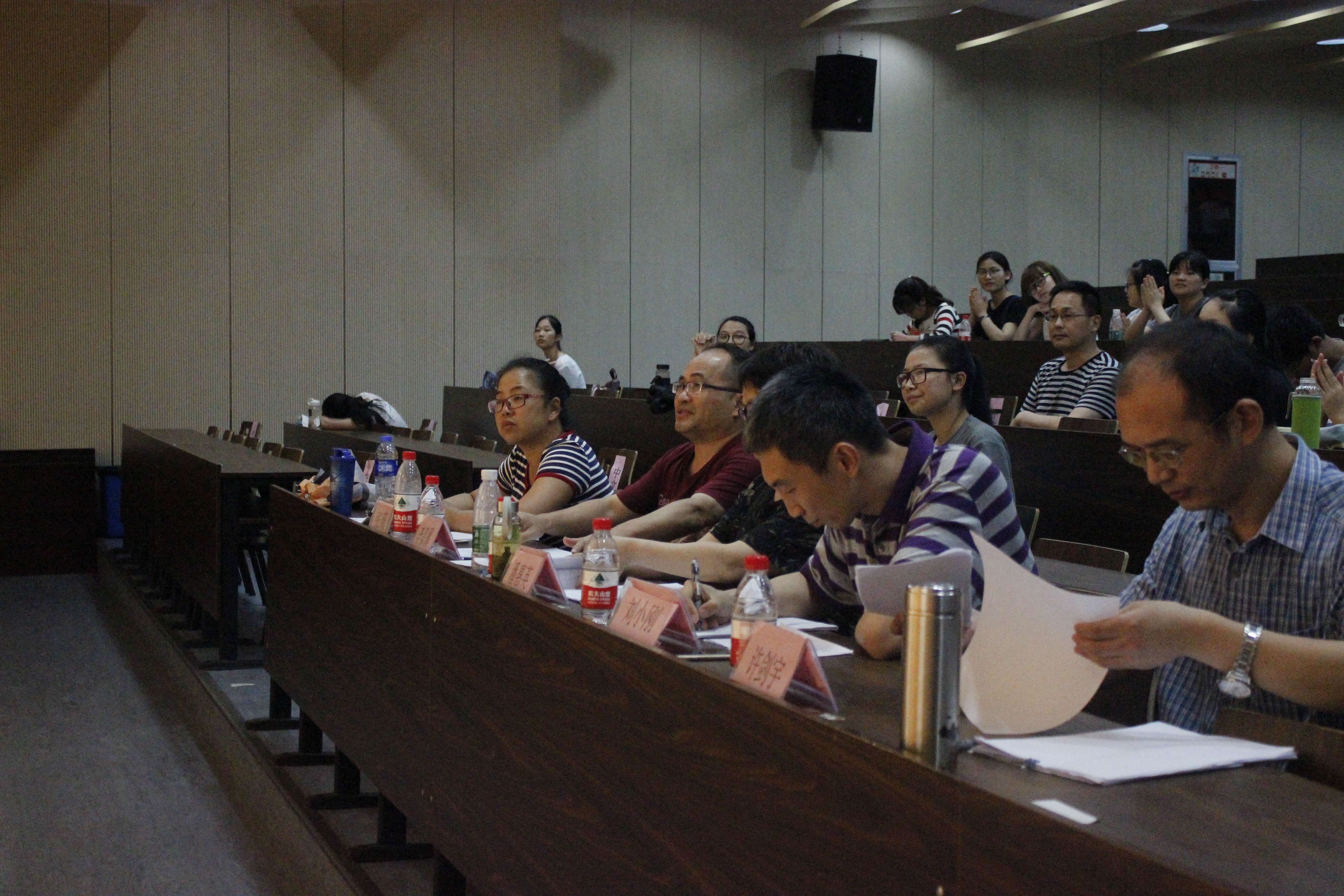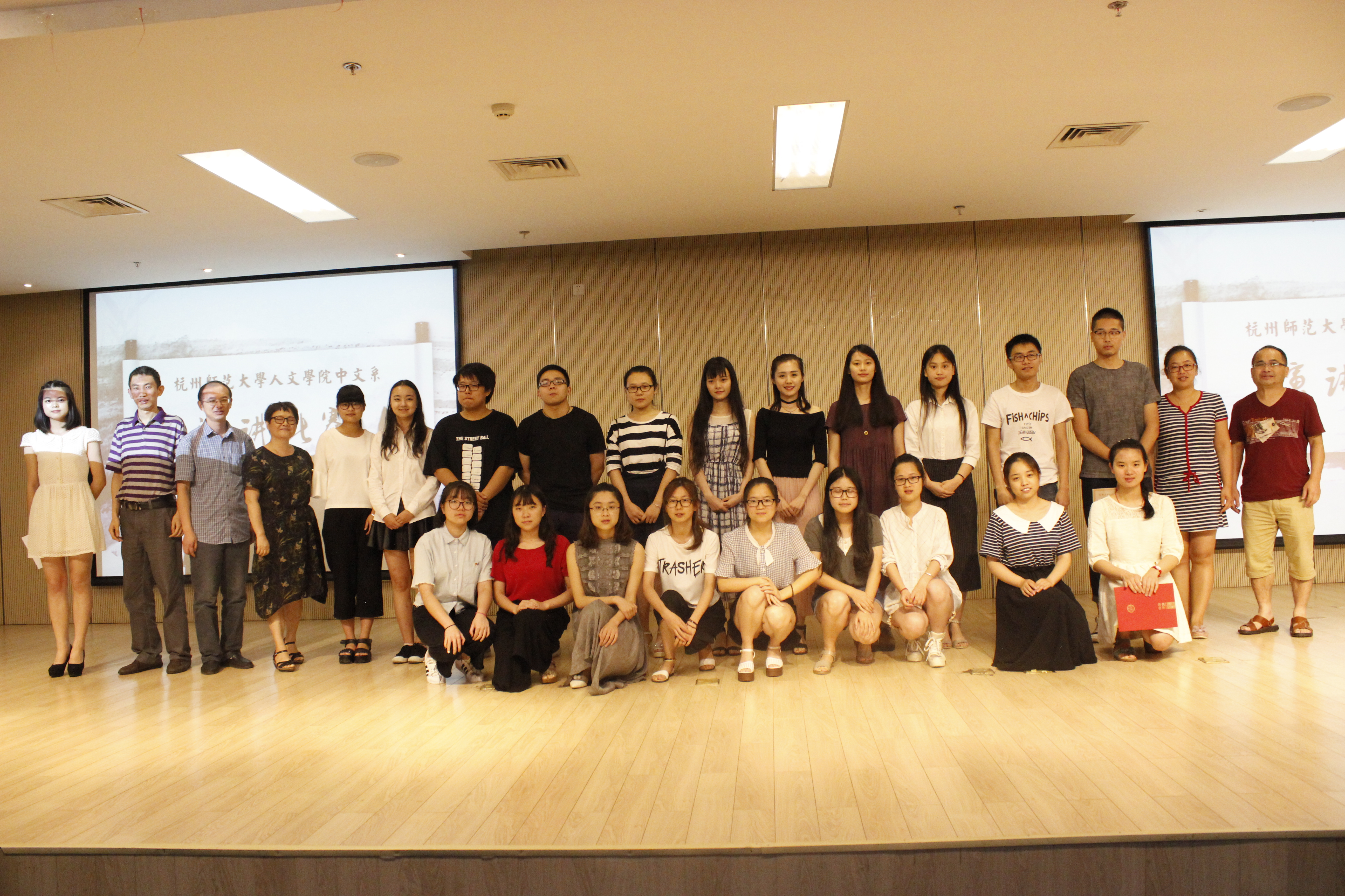 根据短学期的安排,7月7日,小黄书 在恕园2号楼举行了中文系朗诵·演讲大赛。比赛分为两场,上午进行朗诵比赛,下午进行演讲比赛。刘小刚老师、李嘉翼老师、潘惠英老师、许剑宇老师和张薇老师担任本次比赛的评委,中文系各班同学均到场观看。