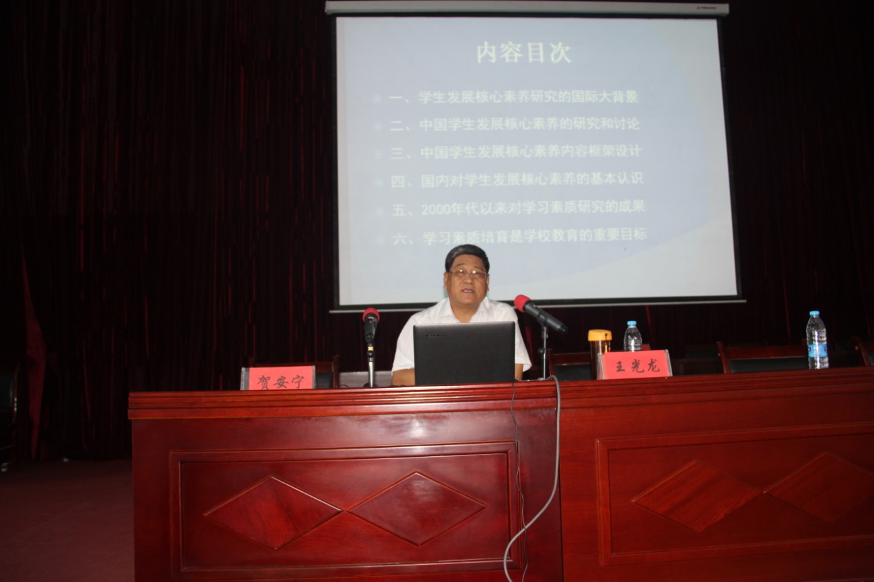 2016年8月15-17日,由杭州师范大学学习科学研究所与银川汇通时代教育培训中心联合组织的“杭州、上海赴西北地区支教讲师团”在银川市第19中学为宁夏回族自治区银川市兴庆区和平罗县的230多名中小学校长和学科带头人进行了主题为“校园文化·课程建设与学生发展”的专题培训活动。王光龙教授组织和主持了本次培训活动。