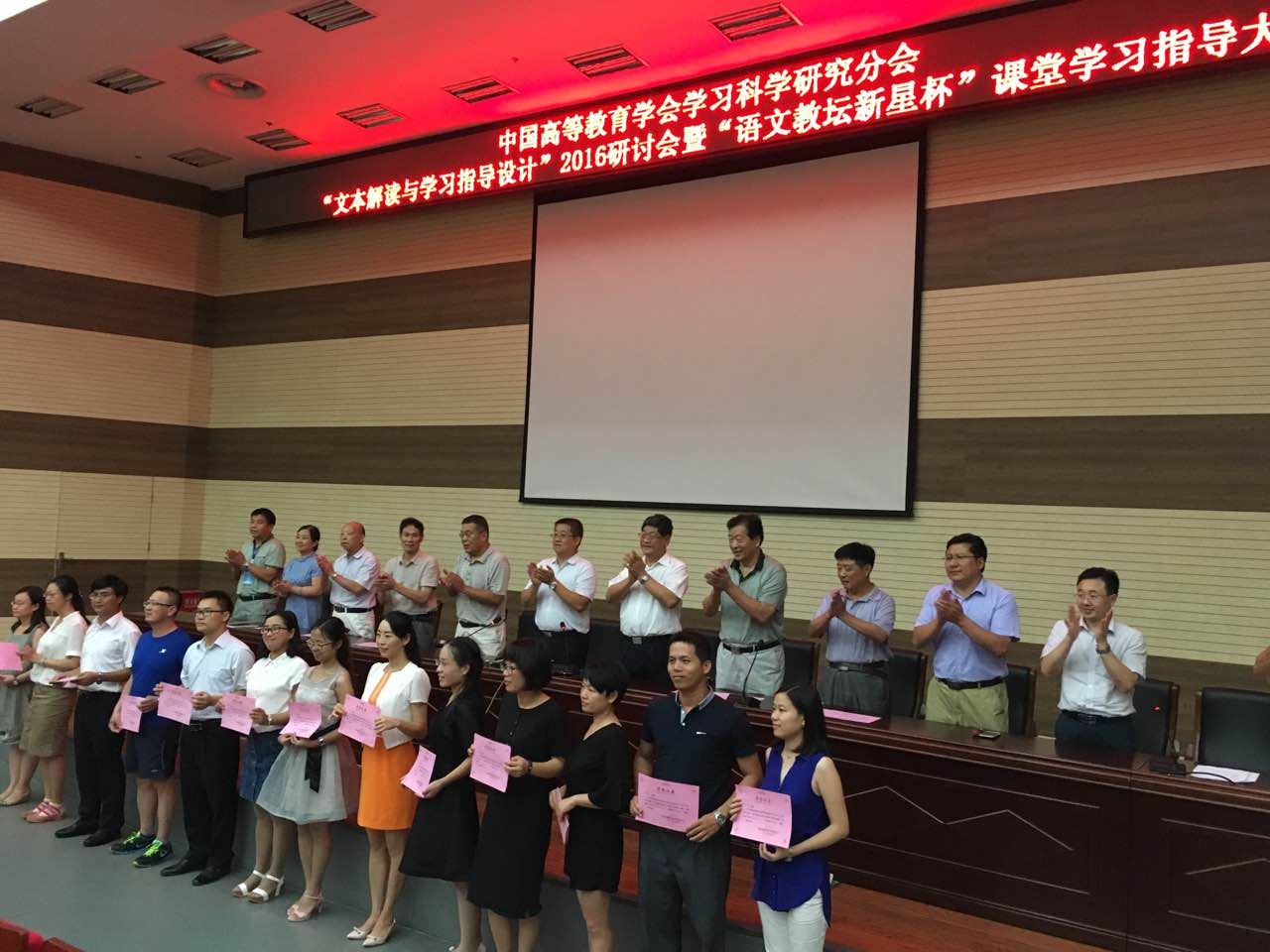 8日下午举行了课堂学习指导大赛活动。来自16个省(自治区、直辖市)的45位中小学语文教师参加了比赛。大赛分为小学、初中、高中三个学段六个小组同时进行.大赛组织委员会制定了《大赛评审参考标准》和《大赛操作规程》,组建了大赛评审委员会和大赛监察委员会。中国高等教育学会学习科学研究分会常务理事、杭州师范大学学科教育研究中心副主任、硕士生导师朱晓民教授担任大赛评审委员会主任;中国高等教育学会学习科学研究分会常务理事、河北省邯郸市教育局副局长曹建召博士,中国高等教育学会学习科学研究分会常务理事、江西师范大学硕士生导师欧阳芬教授,四川师范大学文学院硕士生导师张伟教授担任大赛评审委员会副主任。时金芳教授担任大赛监察委员会主任。大赛评审委员会聘请了42位高校专家、中小学高级教师和语文教研员担任评审委员。参赛选手在课堂上形象地诠释了学习指导的有效策略和艺术。经过一下午的紧张比赛,沈婷婷等18位教师获得大赛一等奖。