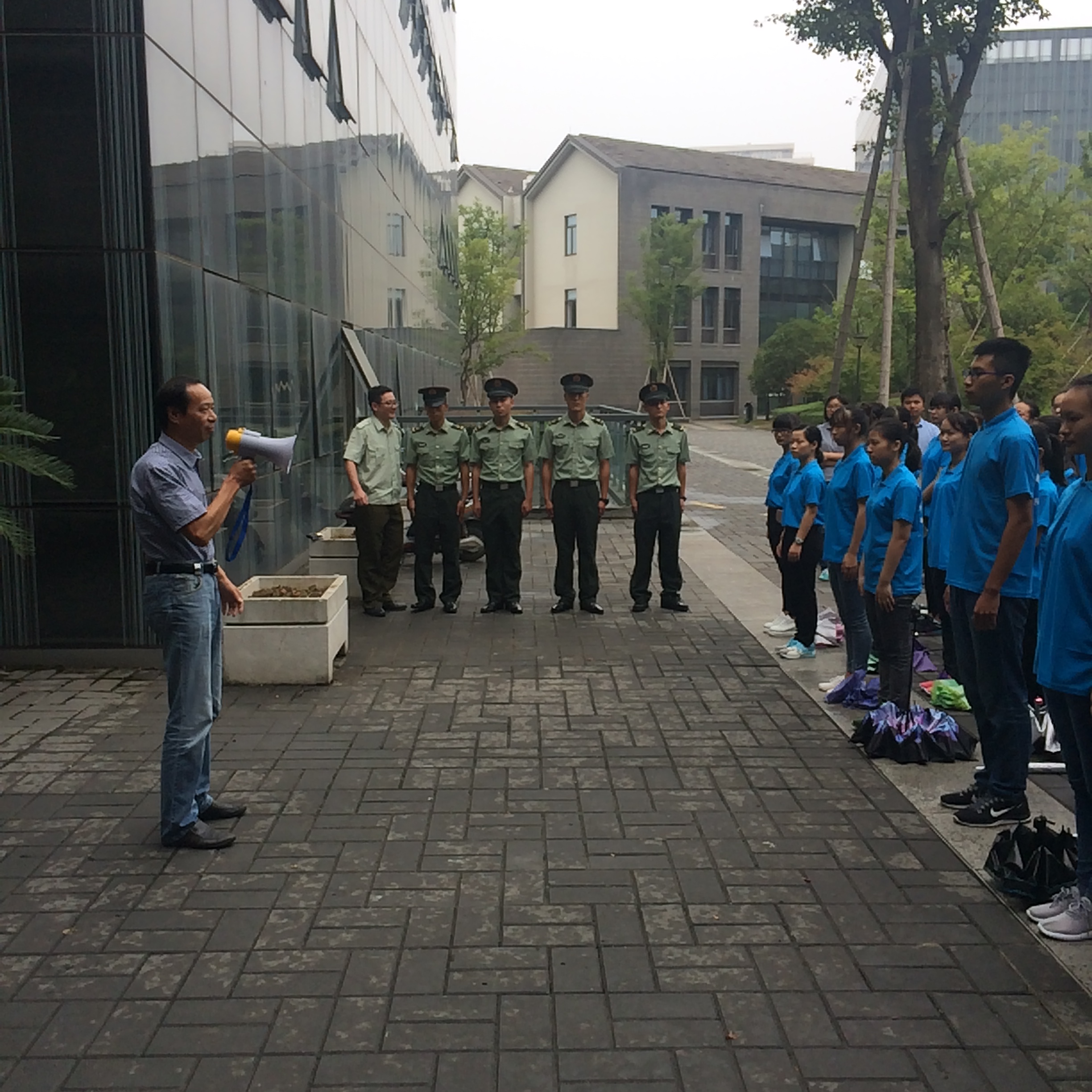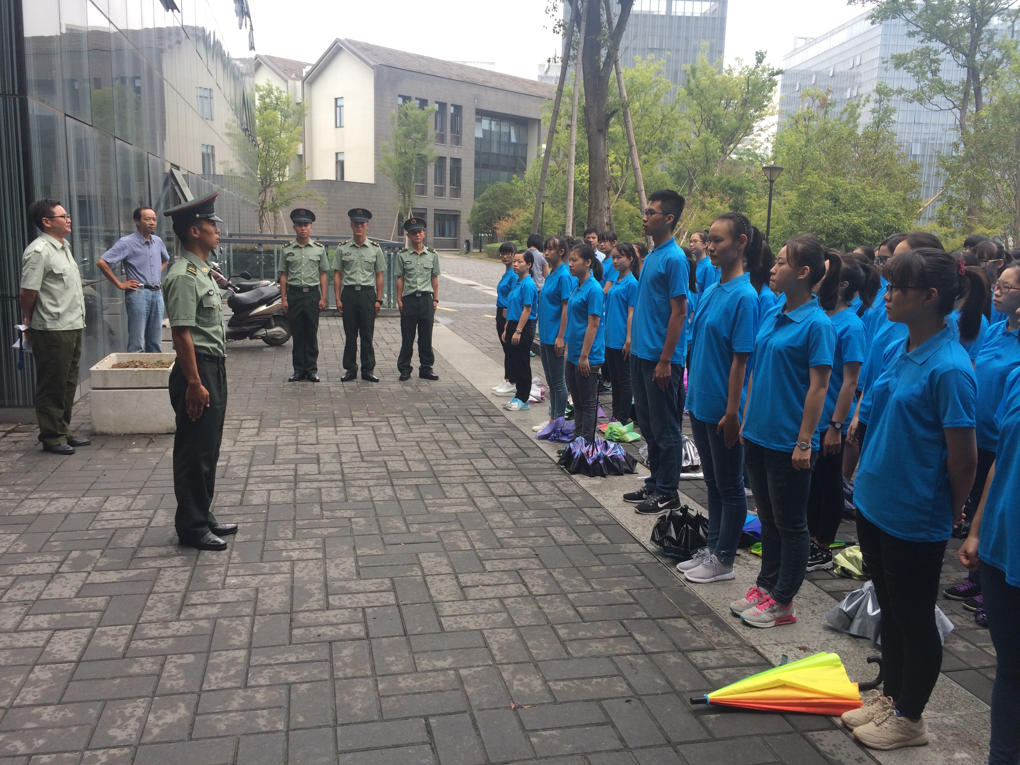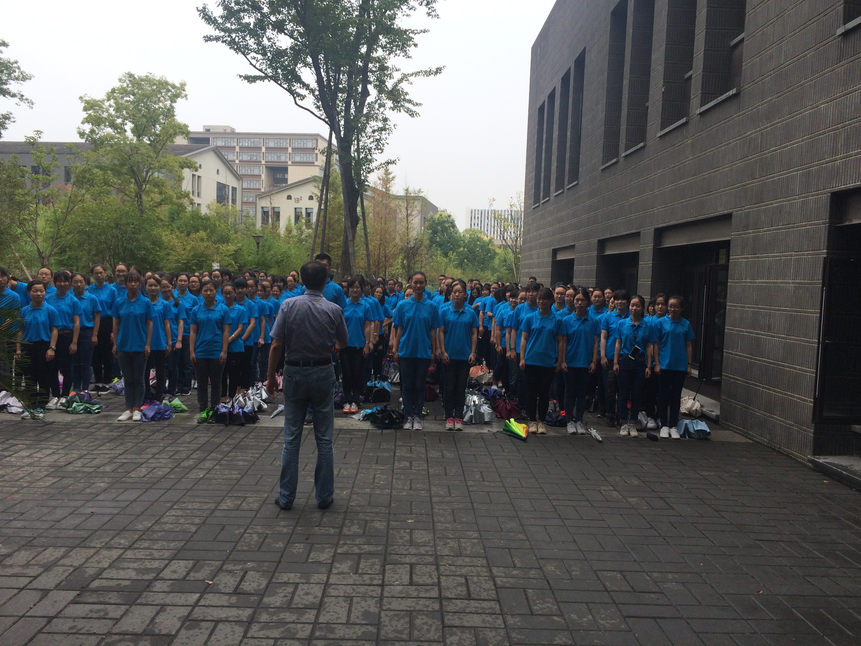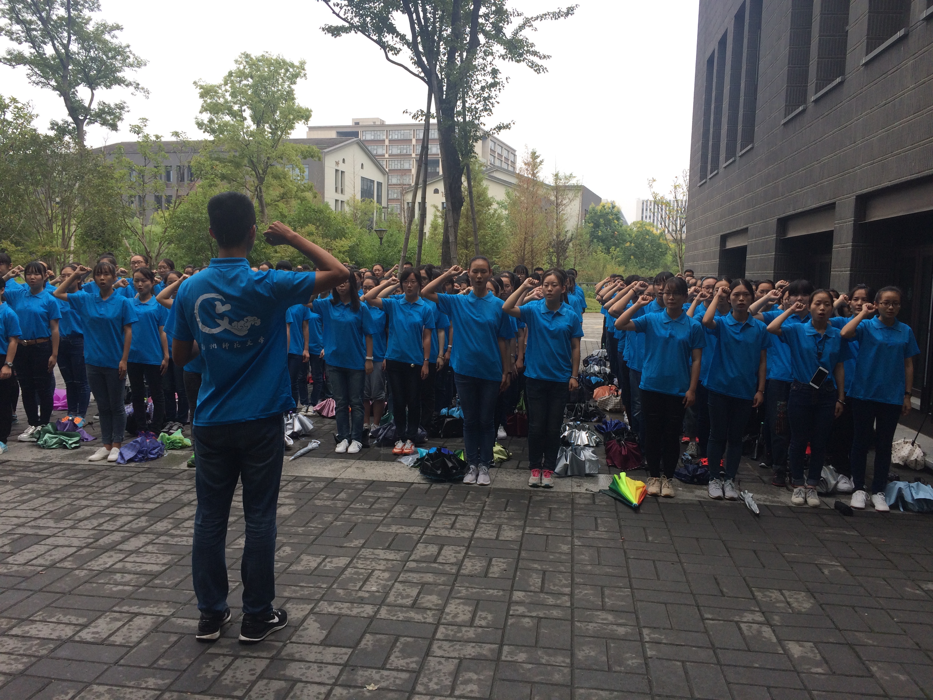 9月14日下午3点,小黄书 在恕园23号楼前召开军训动员大会,2016级辅导员陈飞主持大会。