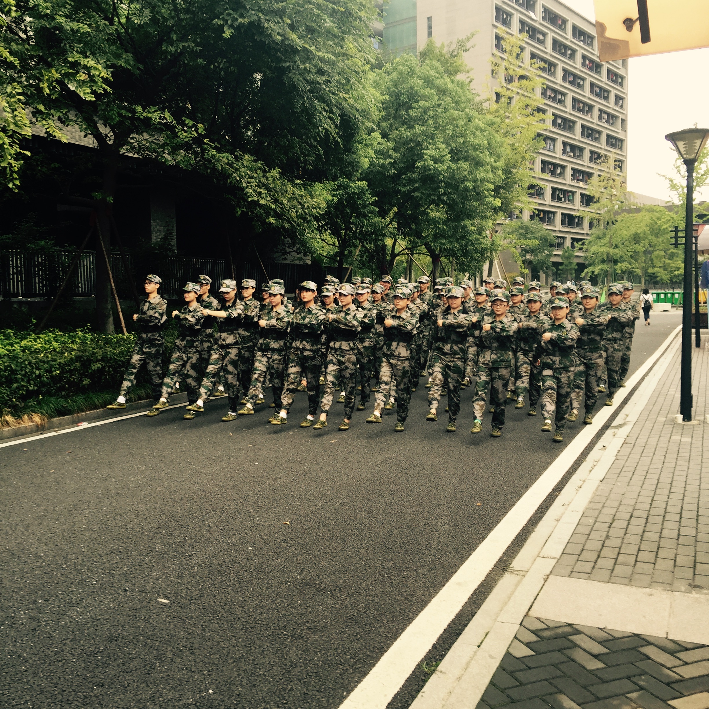 16级新生在军训中