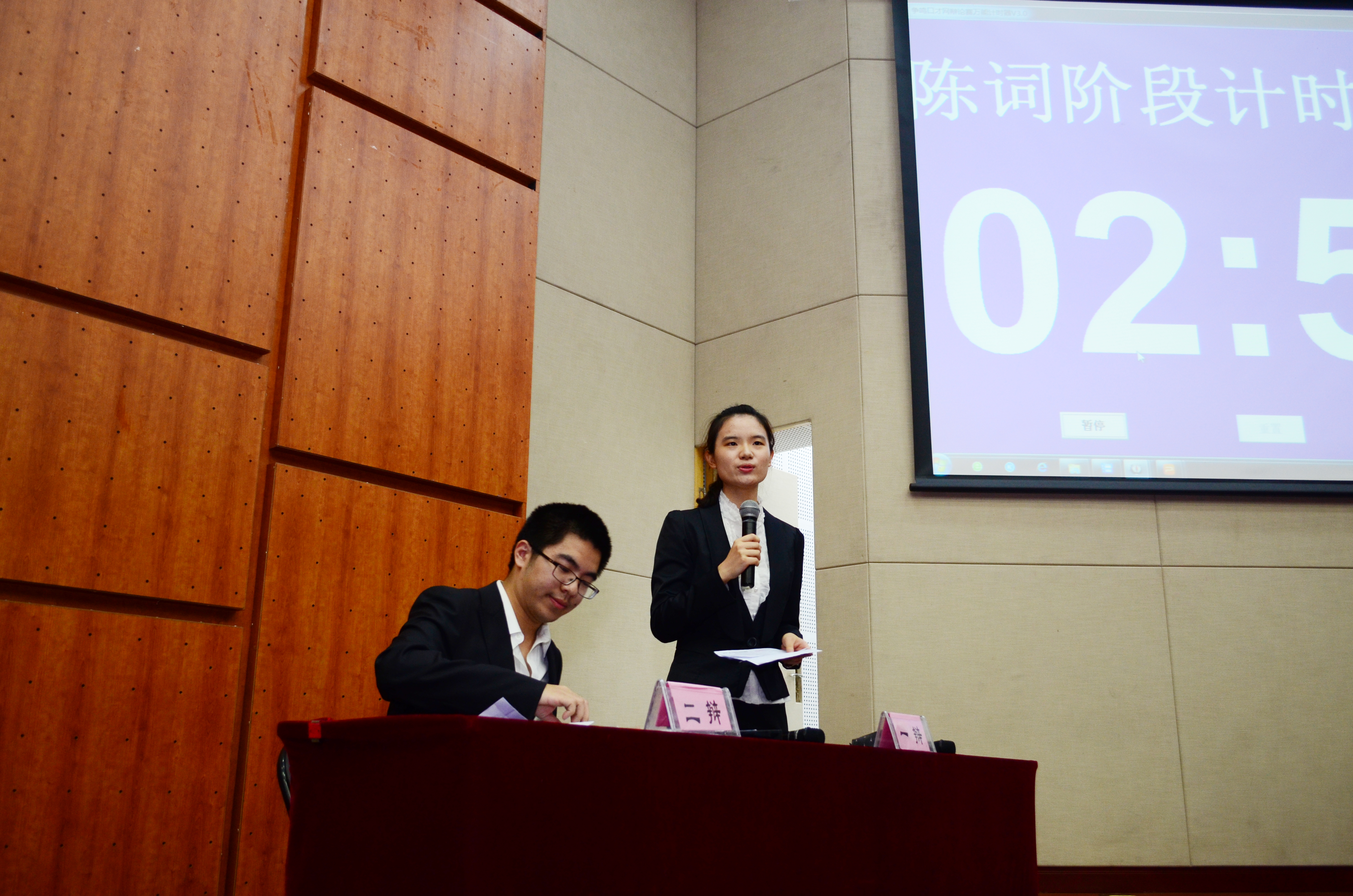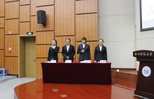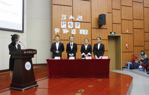 在正式比赛开始前,院辩论队资深辩手鲁春梅、周佳勇、胡启照和谢珂阳围绕“表白遭拒应该主动放弃还是继续追求”这一辩题展开了一场旗鼓相当又妙趣横生的表演赛。这场表演赛上各位资深辩手灵活的应变和内含幽默的语言,引来观众阵阵笑声,活跃了现场的气氛,为正式比赛预热。