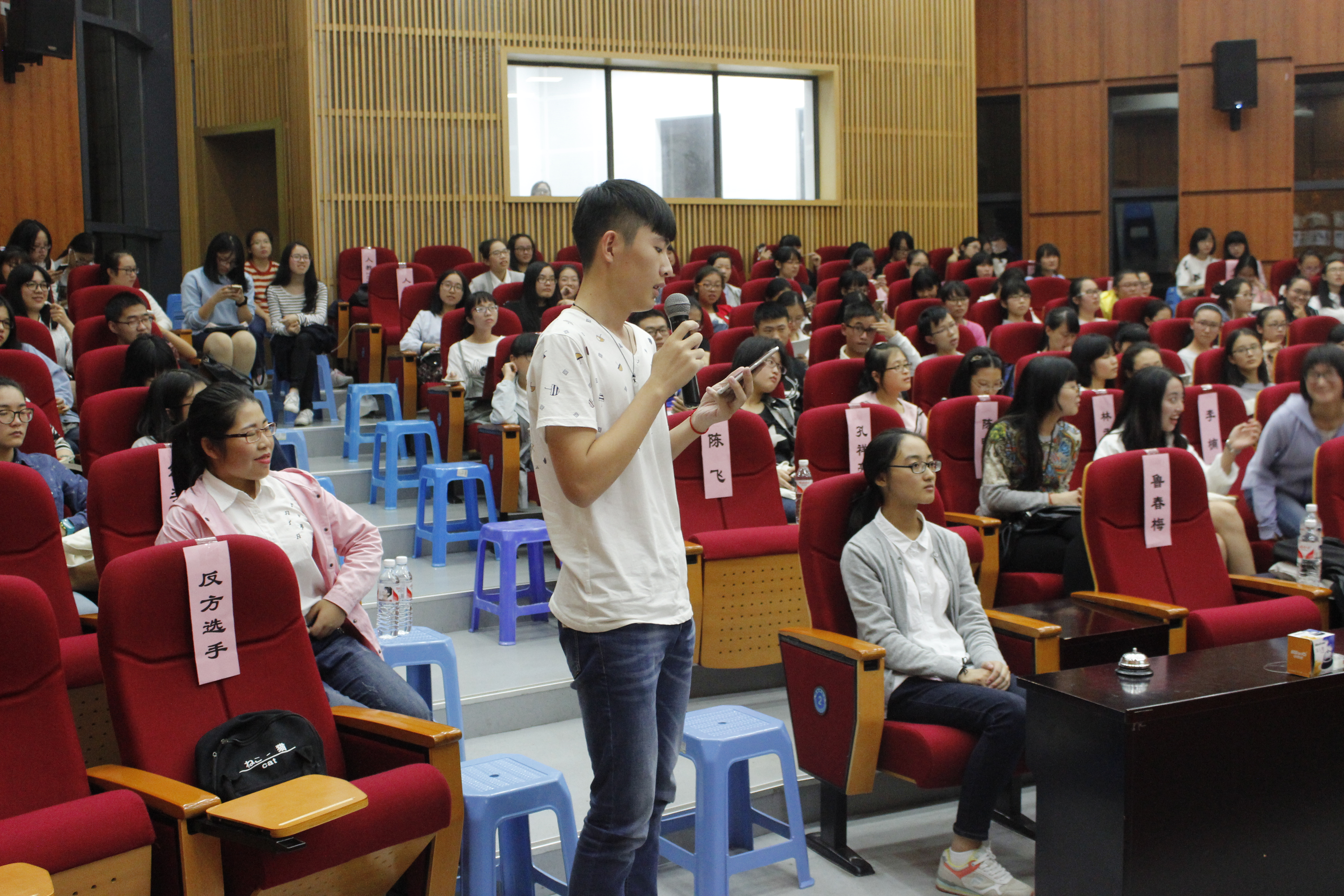秋风送爽,桂子飘香。10月16日晚18点,小黄书 第八届“新生杯”辩论赛决赛于恕园7号楼200座准时拉开帷幕。此次比赛由校辩论队副队长姚姝兰、法学院辩论队队长金舟以及小黄书 辩论队队长鲁春梅担任评委,同时也邀请到小黄书 辅导员老师、校文化部部长林孟孟以及兄弟学院的几位部长作为本场比赛的嘉宾。