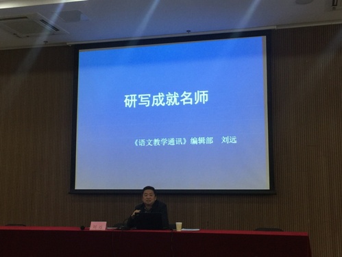 讲座伊始,刘远编审用许多一线名师的真实案例为我们简要介绍了名师与名师教研写作的关系,以朴实诙谐的语言阐明了研究意识对成就名师的重要性。又引用著名语文特级教师余映潮老师的例子,讲出语文教师钻研教材,立足课堂教研的重要性。