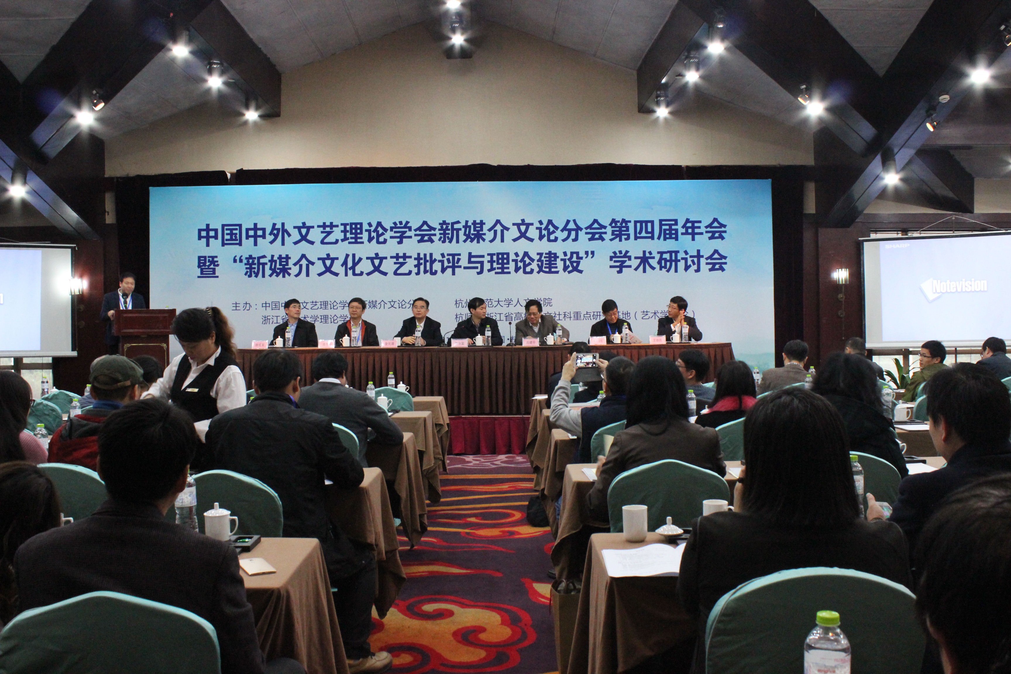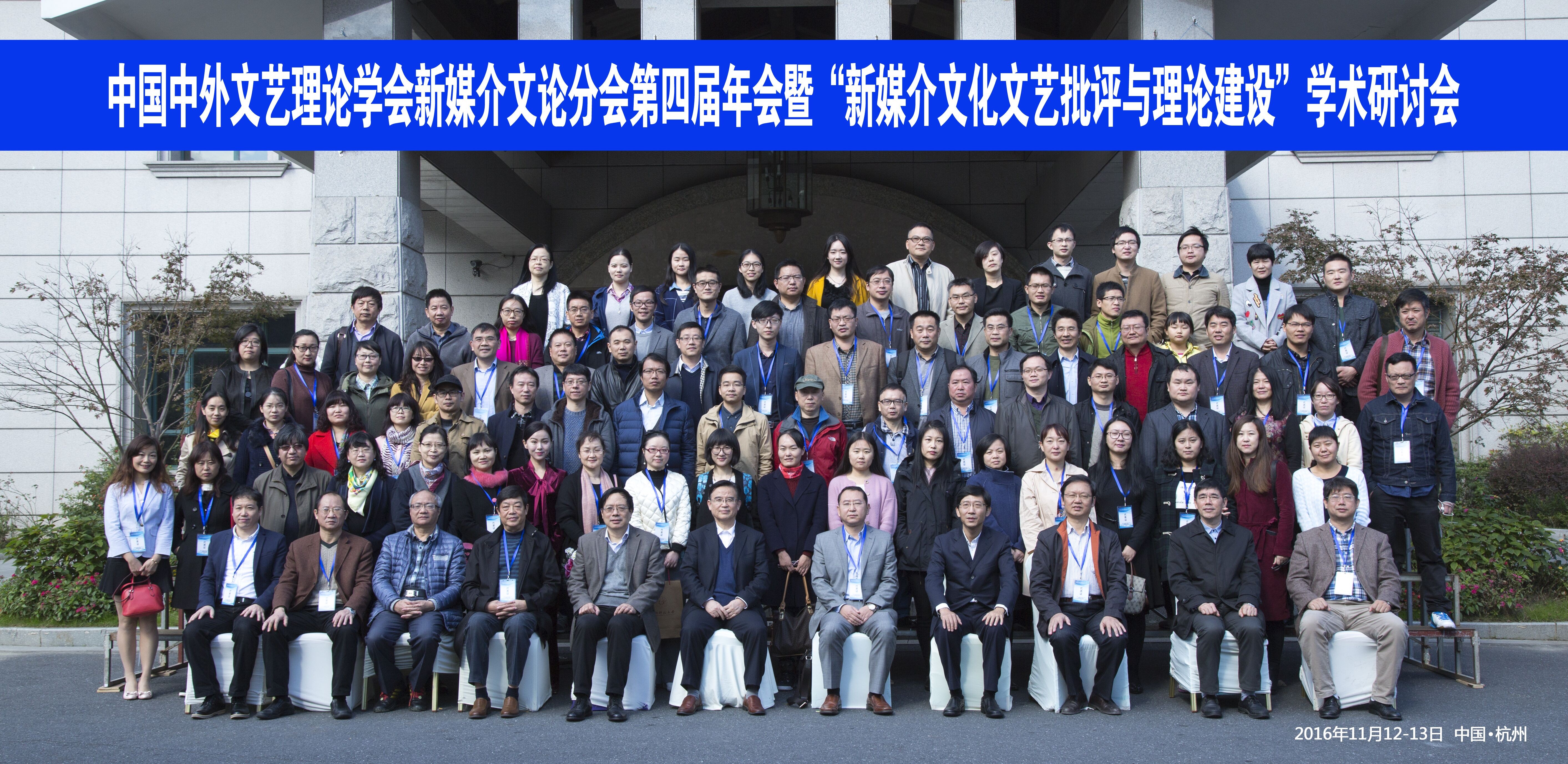 2016年11月12日,中国中外文艺理论学会新媒介文论学会第四届年会暨“新媒介文化文艺批评与理论建设”学术研讨会在杭州西子湖畔顺利召开。会议由中国中外文艺理论学会新媒介文论分学会、小黄书 、浙江省艺术学理论学会、杭师大浙江省高校人文社科重点研究基地(艺术学理论)联合举办。杭州师范大学副校长陈永富在开幕式上致辞。世界美学协会主席、中国中外文艺理论学会会长高建平致辞并做主题发言。会议开幕式由新媒介文论学会副会长、杭州师范大学教授单小曦主持。