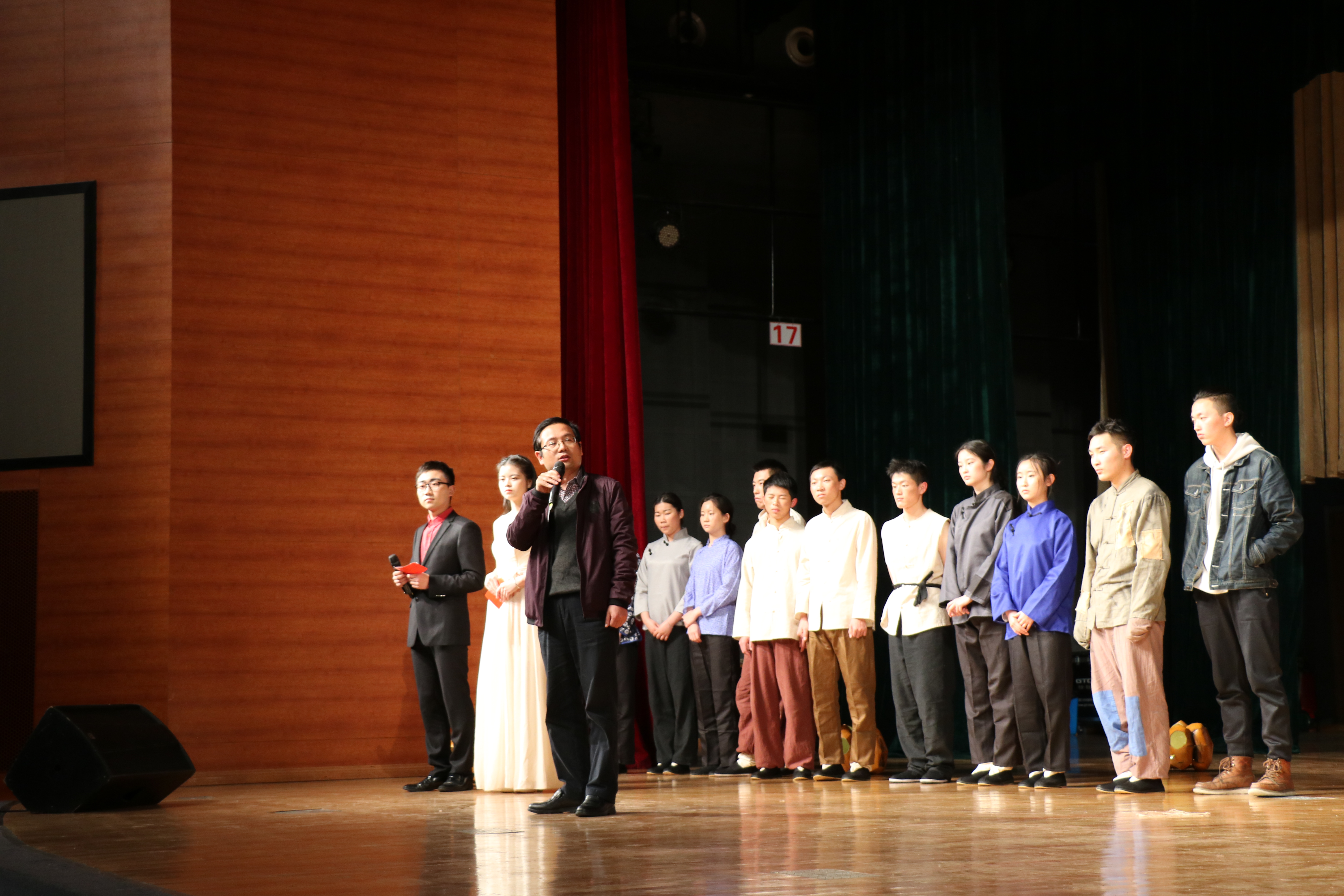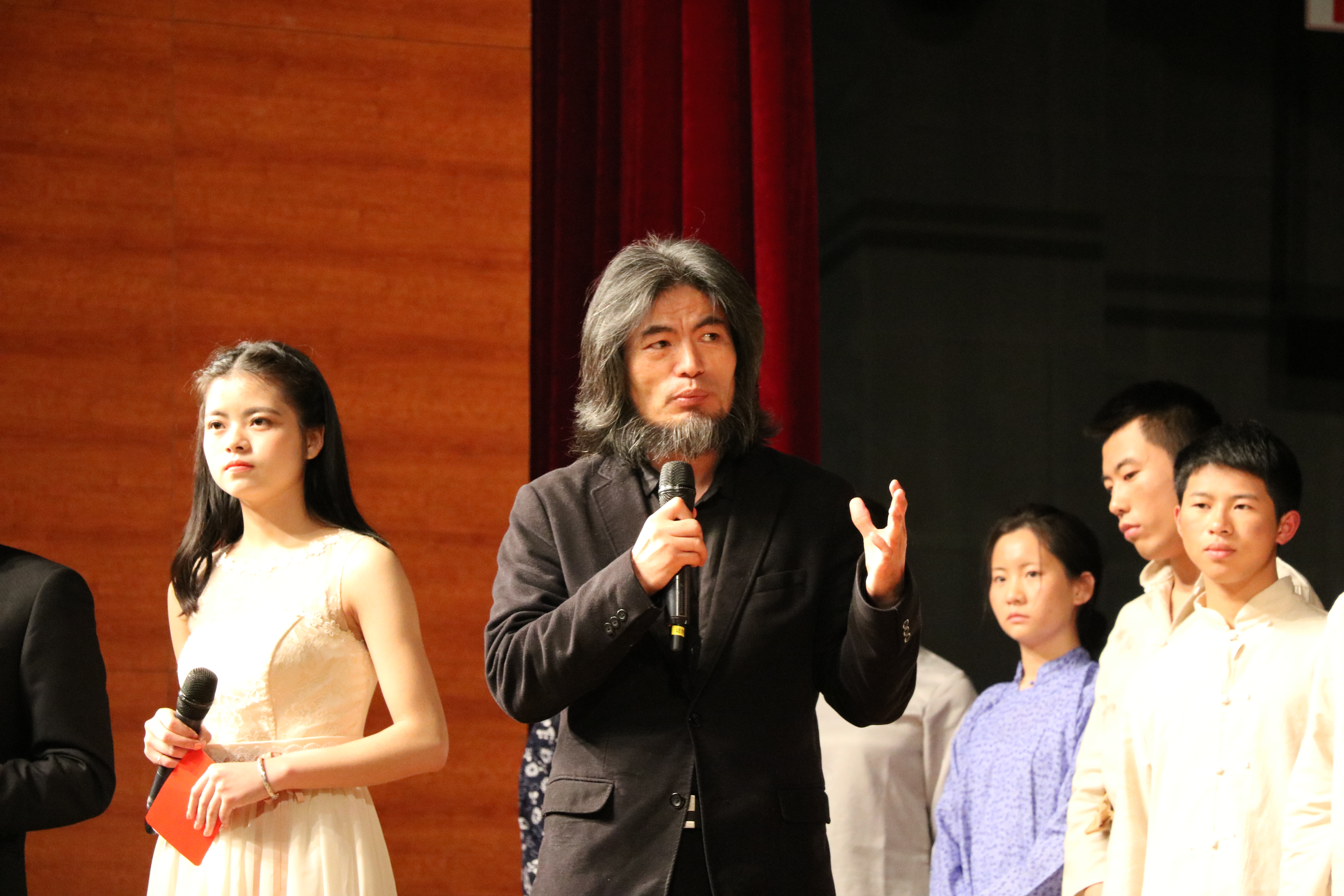 流霞剧社指导老师黄岳杰点评剧社的表演。黄老师在点评中指出,今天剧社为杭师大的师生带来了很好的演出,相信为此次的演出社员都花了很大的心血。黄老师认为,校园戏剧应代表大学生的风貌,反映大学生的价值观、审美观,戏剧的表演是心灵的教育,是大学很好的体验。绍兴文理学院小黄书 金坚强书记在发言中表示,感谢杭师大小黄书 在交流中的帮助,希望日后双方能继续在校园戏剧方面开展深度交流。