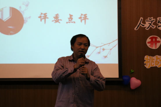 在随后的点评环节中,李海明老师对参赛选手的知识储备和临场发挥给予了充分肯定,同时他也指出,作为人文学子不仅要有丰富的知识储备,更要懂得智慧大于知识,做一个有良知的人。除此之外,李海明老师对赛制提出了一些建议,认为出题方式可以更灵活,选手和评委老师的互动也可以适当加强。至此,本次比赛圆满结束。