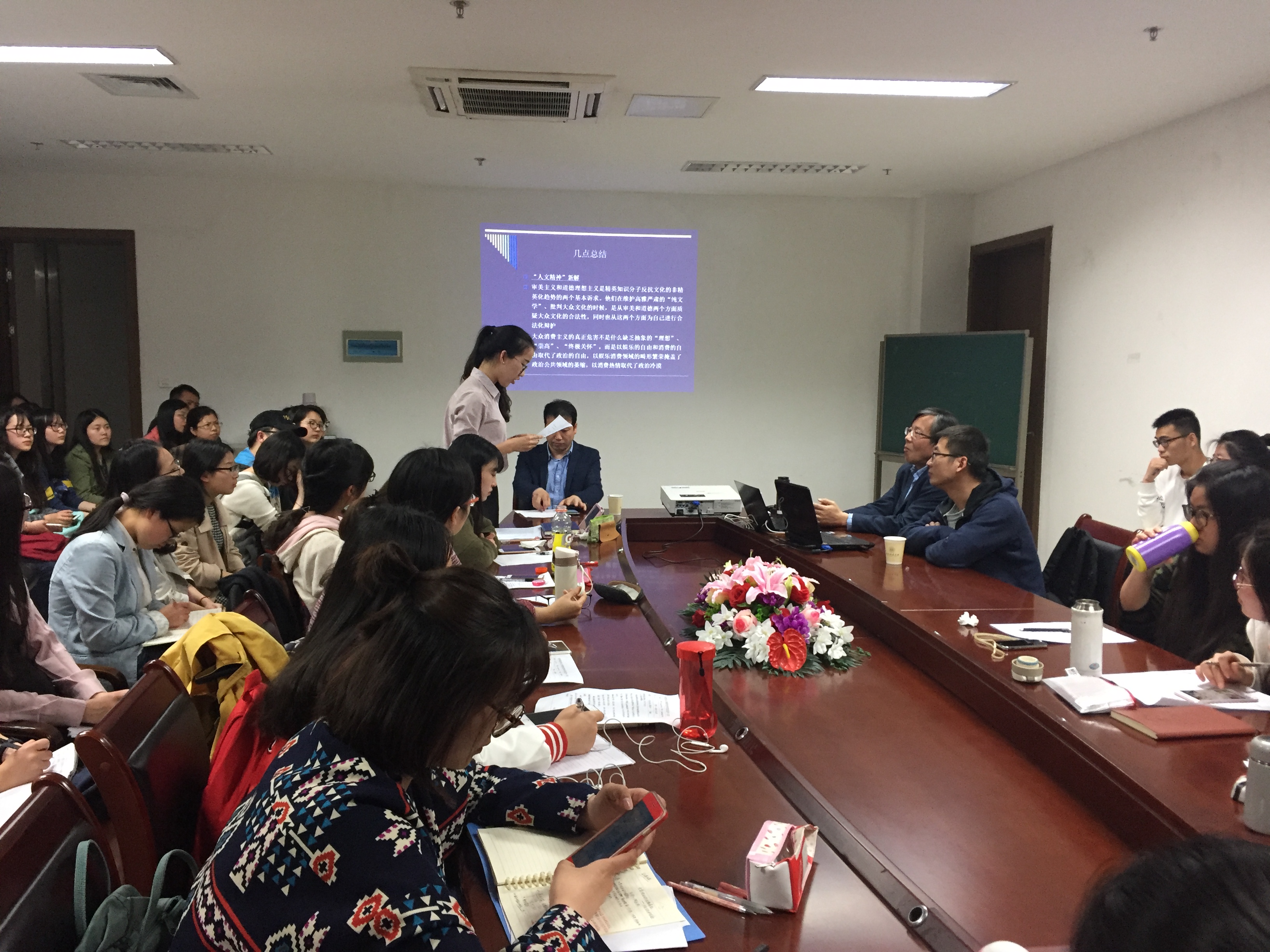 4月6日下午五点三十分,首都师范大学陶东风教授受邀赴小黄书 讲学,于恕园23号楼312室为同学们带来了一场名为“文学活动的去精英化”的讲座。本次讲座由单晓溪老师主持,中文系大部分研究生参加了本次讲座,许多本科生更是慕名而来。