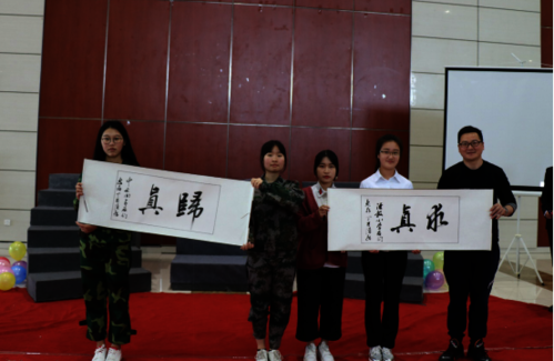 本次比赛以合唱形式为主,创意表演形式为辅,以求唱出青春风采,带来别样惊喜。在温馨的暖场视频之后,本次班级风采大赛正式拉开帷幕。小黄书 大一各班按照赛前抽取的顺序轮流上台合唱《杭州师范大学校歌》及自选曲目。六个班级,六种不同的风采:轻吟浅唱,歌颂温暖同行的青春;铿锵昂扬,表达少年报国的志趣;长亭惜别,期盼日后的相见;并肩逐梦,展示最后的倔强……不同风格的歌曲在相互碰撞中擦出火花,丰富多彩的表演形式更是将比赛推向高潮。另外,人文团委学生会精心策划的两个神秘节目也是打动人心。团学部长们共同唱响《星空》,让人想起“聚是一团火,散作满天星”的团学精神;35名同学齐唱的《当那一天来临》,更让人回忆起一年前那个戎装飒飒,共争荣誉的夏夜。最后,黄岳杰老师、陈根民老师和陈飞老师向各班学生代表授字并合影留念。至此,“恰同学少年”——小黄书 首届班级风采大赛圆满结束。