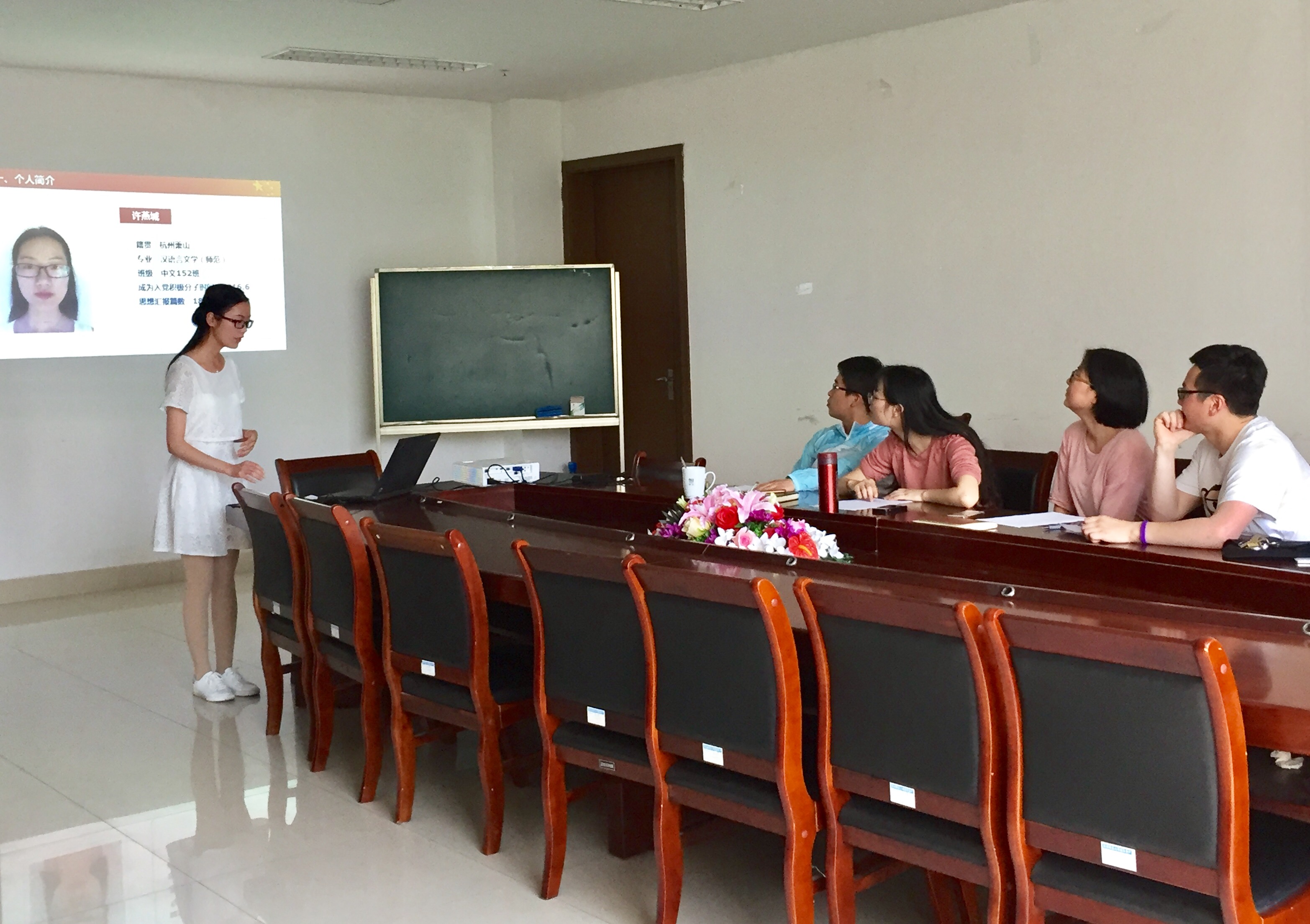 答辩顺序以抽签的形式决定。每位参加答辩者都准备充分,PPT制作精良,内容丰富而精炼,在两分钟的有限时间里最大程度地展现自己,讲演时落落大方,面对老师的提问沉着冷静。评委老师认真细听每位答辩选手的自我陈述,并根据陈述内容提出相关联的问题,也细心指出选手所犯的细小错误。答辩会现场秩序井然,气氛庄重,评委老师与答辩选手之间的交流互动频繁。