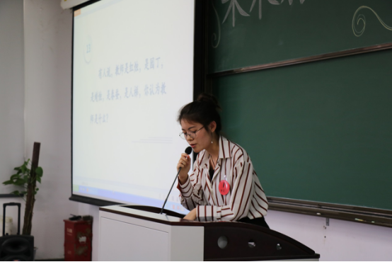 比赛主要分为即席演讲与模拟讲课两个环节,以求全方位考察参赛选手在“教学设计、课件制作、模拟上课、板书”等四个方面的能力。在即席演讲环节,选手们语言流畅,条理清晰,演讲内容生动切题。在模拟讲课环节,各位选手的表现也都可圈可点,让现场交织着散文的幽雅、诗歌的韵味和小说的趣味。在点评环节,两位研究生评委细致具体地分析了各位选手的表现,并提出了自己的看法与建议。最后,叶黎明老师将中文场的比赛情况总结为四大亮点和四项不足,希望选手们有针对性地进一步提高自身素质。与此同时,历史场的比赛也在紧张激烈地进行着,十位选手依次上台展现了他们出众的临场能力与卓越的讲课技能。最后由胡悦晗老师与林航老师分别对上、下半场选手们的表现做出点评。两位老师在肯定选手们的优点时也强调了教师讲课的目的在于“引导学生们去发现水源,而非一味给予他们水分”,这令参赛选手受益良多,也赋予了比赛更深刻的意义。