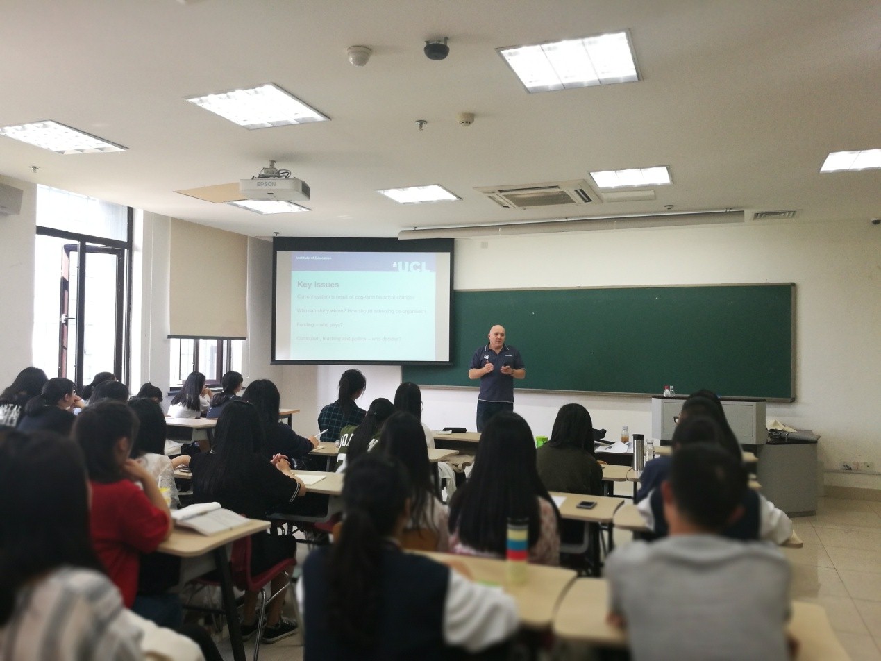 弗雷曼教授对英国的教育体系进行了较为详细的讲解,其中包括教学方式、教学内容、教育管理方式、学校类型以及政府投资等一系列内容;并发表了自己关于中英教育的一些观点与看法。在演讲内容结束后,马克先生以其幽默风趣的交流方式与同学们展开了互动。在场同学对于本次讲座反响热烈,大家普遍表示本次讲座使自己对于英国教育体系这一原先并不熟悉的领域有了较为系统的了解,并且引发了对自己大学学习生活方式的反思与思考。讲座结束后,弗雷曼教授与小黄书 马丁老师、周东华老师、陈兆肆老师、林航老师、周真真老师等进行了深入交流。