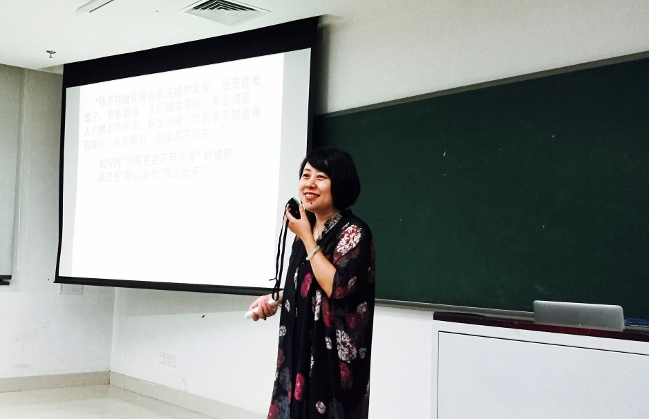 讲座前,先由师范生技能强化班的缪小静和汤若旭同学作《定风波》的教学展示,赵老师抓住两位同学教学中的关键之处做精到点评,之后开始“爱的语文”专题讲座。在讲座中,赵老师通过《目送》一课的案例展示让在场学生切实体会到了语文课堂中情感的力量。龙应台的声音、话语;师与生的对话朗读;课外材料的拓展;教师独特的人生体验……赵老师用丰富多样的教学活动一次次地唤醒与激发学生的潜能,最后将散文本身“难以言传”的情感完美呈现并融入了学生的内心。