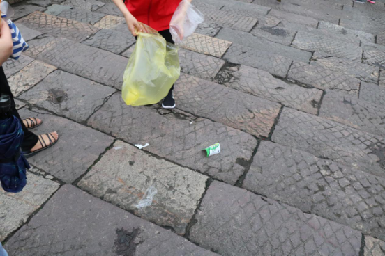 上午九点,塘栖古镇风清河畅,在老街的“广济桥”上,我们的志愿者们身穿志愿服拾级而上,为枇杷小镇、水乡名镇带来了一抹鲜亮的色彩。简单的任务分配过后,志愿者们分组开展“随手拍、随手捡、随手护”的巡河护河活动。志愿者们戴上事先准备好的手套,手拿垃圾袋,对运河周边街道上的垃圾进行捡拾清理,并对一些特别脏的死角进行了拍照记录。据了解到,当地的清洁工人对古运河周边每天都会进行打扫,但由于景区人流量大,且游客为了图方便,常常随地乱扔烟蒂、垃圾袋,使得古运河周边街道不能保持很好的清洁。在巡河过程中,志愿者们还发现,当地正在对塘栖古运河河道进行清淤作业,并且部分河段的水质看上去已经有了明显的改善,上面还种上了赏心悦目的荷花。在沿河巡视的过程中,志愿者们纷纷表达了对古镇深厚历史文化底蕴以及水乡“小桥流水人家”式美景的赞叹,同时还加深了对“五水共治”价值意义的认识,坚定了致力于治水实践的决心。