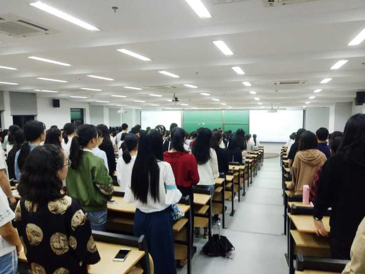 大会伊始,大家首先清唱了优美的校歌。余音未散,陈飞老师带领大家回顾了上一学年的班级风采,视频中的一张张笑脸、一帧帧剪影,保留着大家共同的美好回忆。随后,中文161班的陈政同学深情朗读了来自乔艳通教官的《致小黄书 2016级全体同学的一封信》,乔艳通教官是2016级学生军训一营二连连长,他以朴实的语言、诚挚的感情表达了他对大家的期望,让在场同学备受鼓舞。接着,陈飞老师带领大家玩了名为“生命故事”的游戏,同学们通过游戏充分感受到了生命成长的跌宕起伏。