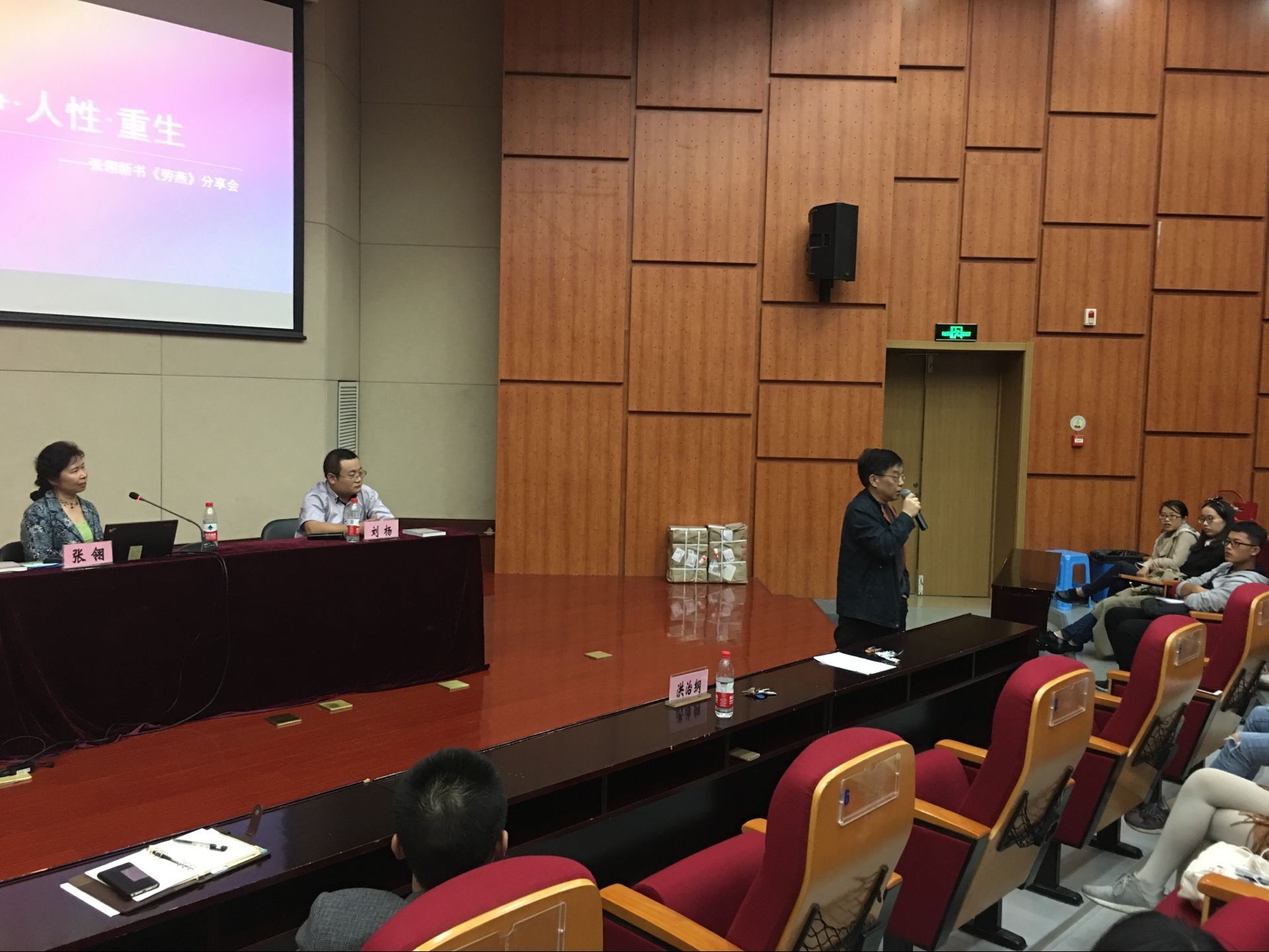 在其后的观众提问环节,同学们就《劳燕》的书名和书中女主角的设定问题向张翎老师提问,张翎老师一一为其解答。洪治纲院长也就分享会的内容提出了自己的见解,他在充分肯定《劳燕》价值的同时,也表达了对旧时代女性的赞美。最后,本次讲座在热烈的学术交流中落下了帷幕。