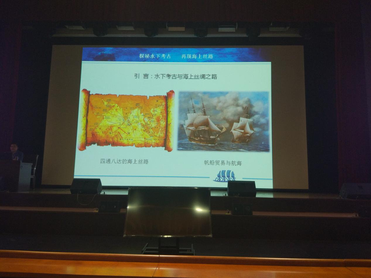 在主持人简单的介绍过后,讲座在现场观众热烈的掌声中拉开了序幕。林老师首先向大家分享了他参与水下考古工作的一些经历,并由此引出宁波“小白礁1号”水下考古这一案例。随后,林老师结合“小白礁1号”实例分别为我们呈现了“如何调查发现”、“怎样考古发现”、“出水哪些珍宝”三大主题。在“如何调查发现”版块中他向我们指出:“史料的研究与解读,对水下考古工作的开展具有重要价值”,“实地走访同样是一项必不可少的调查方法”;在“怎样考古发现”版块中,林老师向我们展示了现代水下考古的先进设备与方法,令在场同学眼界大开;在讲到出水文物的维护时,林老师总结道:“出水文物的修缮、保护、研究是一个十分漫长的过程,是研究人员穷其一生去做的事”。最后,林老师着重向我们强调了考古历史研究的问题意识,他以“小白礁1号”的热点探讨为切入口,围绕“现况如何”、“为何沉没”、“到哪里去”等问题进行细致的分析、讲解,使大家对问题的构建有了更为深入的了解。