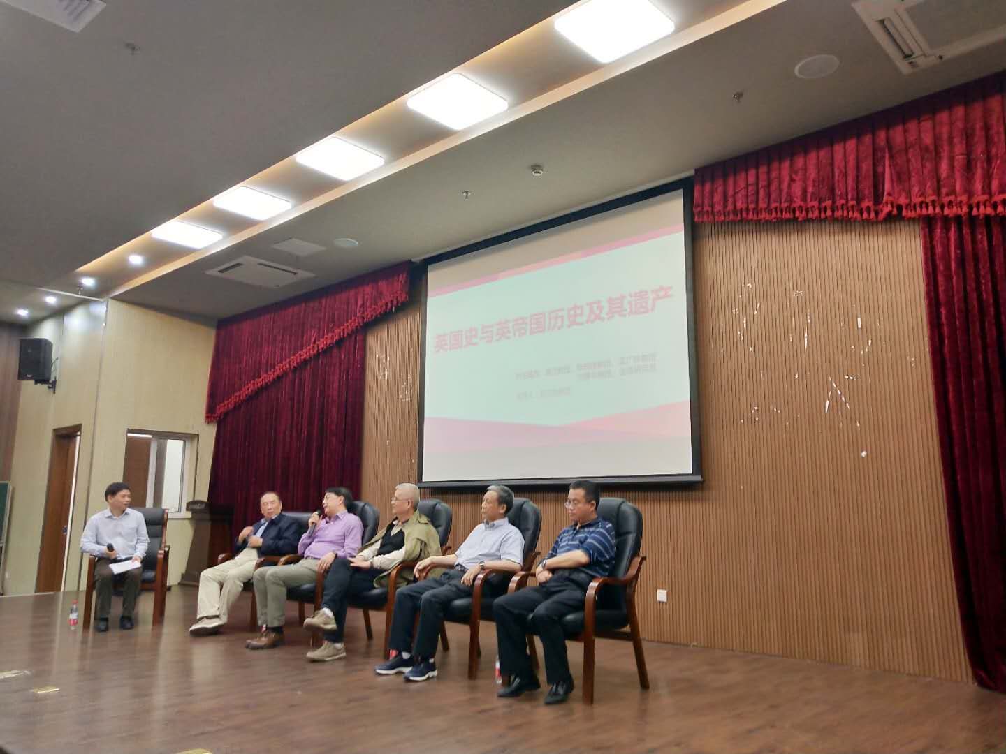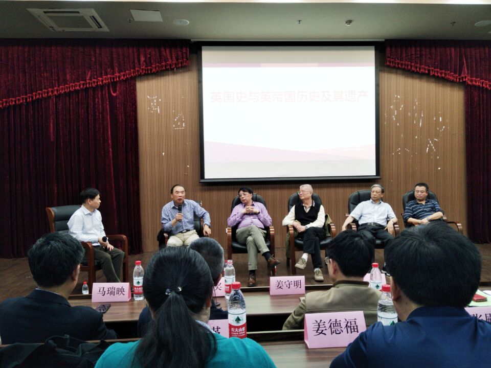 4月21日晚上,中国英国史研究会会长北京大学历史系高岱教授、研究会副会长南京大学历史系陈晓律教授、人民大学历史系孟广林教授、天津师范大学刘景华教授以及中国社会科学院世界史研究所金海研究员做客杭州师范大学,在恕园23号楼弘毅厅为我校师生带来了一场以“英国史与英国帝国历史及其遗产”为主题的精彩对话。