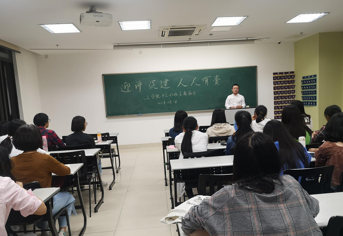迎接本科教学审核评估,是目前我校的中心工作。为支持和配合学校、学院工作,使我班同学进一步明确评估工作的意义和自身责任,并落实到行动中,小黄书 中文183班于2018年10月7日在恕园9号楼202教室,召开了“迎评促建,人人有责”主题班会。