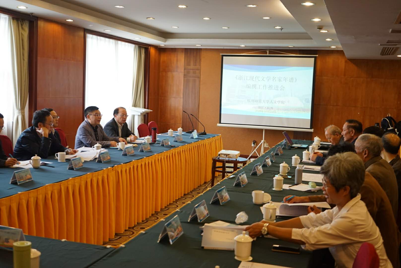 10月21日,《浙江现代文学名家年谱》(第一辑)编撰工作推进会在浙江百瑞酒店顺利召开。浙江省社会科学界联合会副主席邵清、省社科规划办副主任董希望等领导,与来自全国各地的现代文学研究专家齐聚杭州,针对正在编撰中的《浙江现代文学名家年谱》书系,进行了认真而又热烈的讨论。各位专家畅所欲言,不仅道出了自己在作家年谱编撰过程中的各种艰辛,还针对一些难以预料的困难和障碍,彼此帮助,共同寻找解决的办法。《浙江日报》、《杭州日报》等多家媒体记者对本次会议进行了翔实的报道。