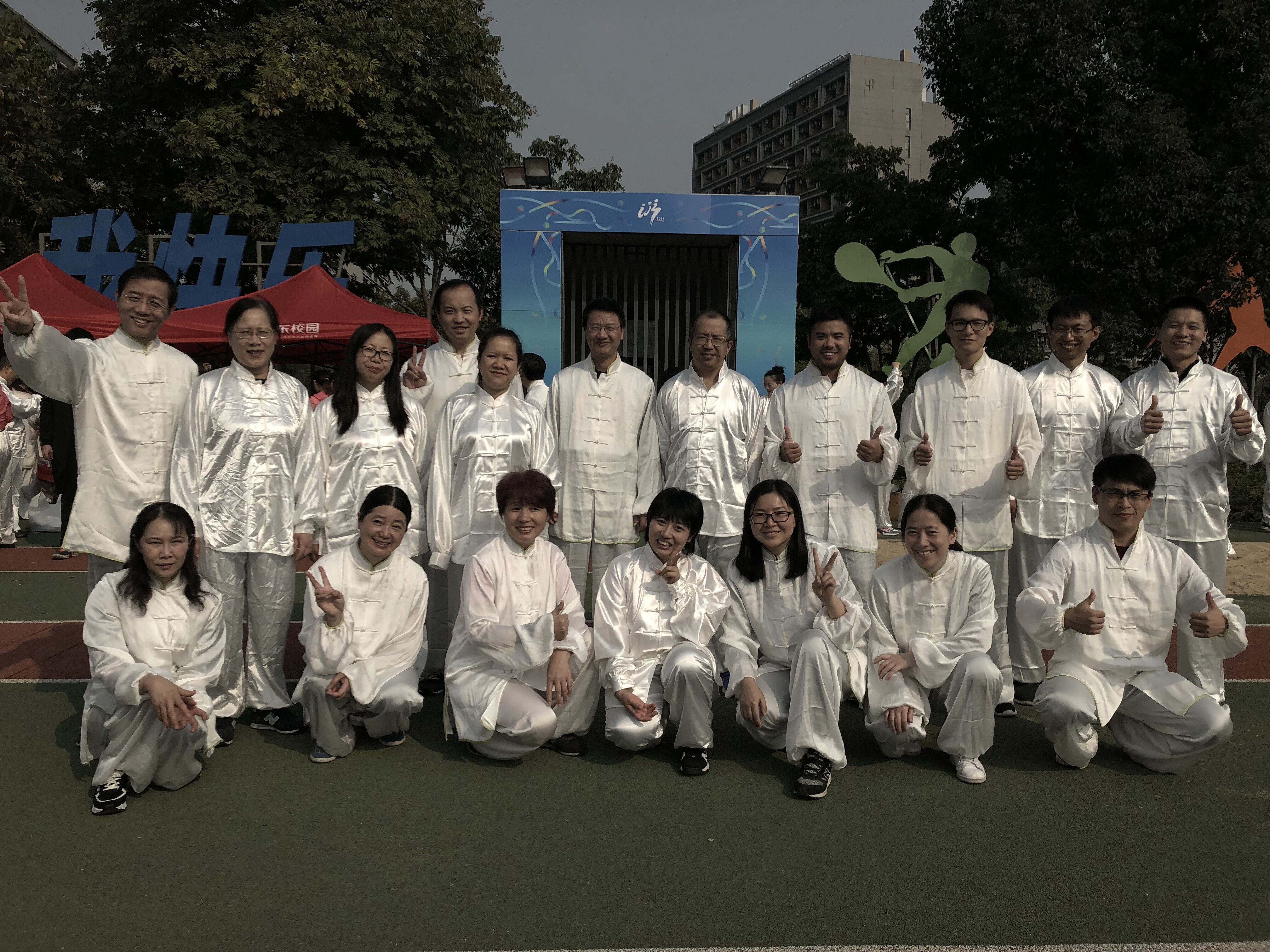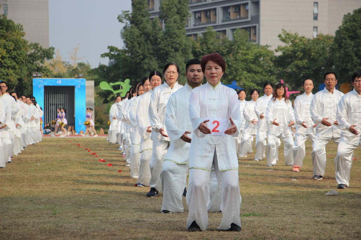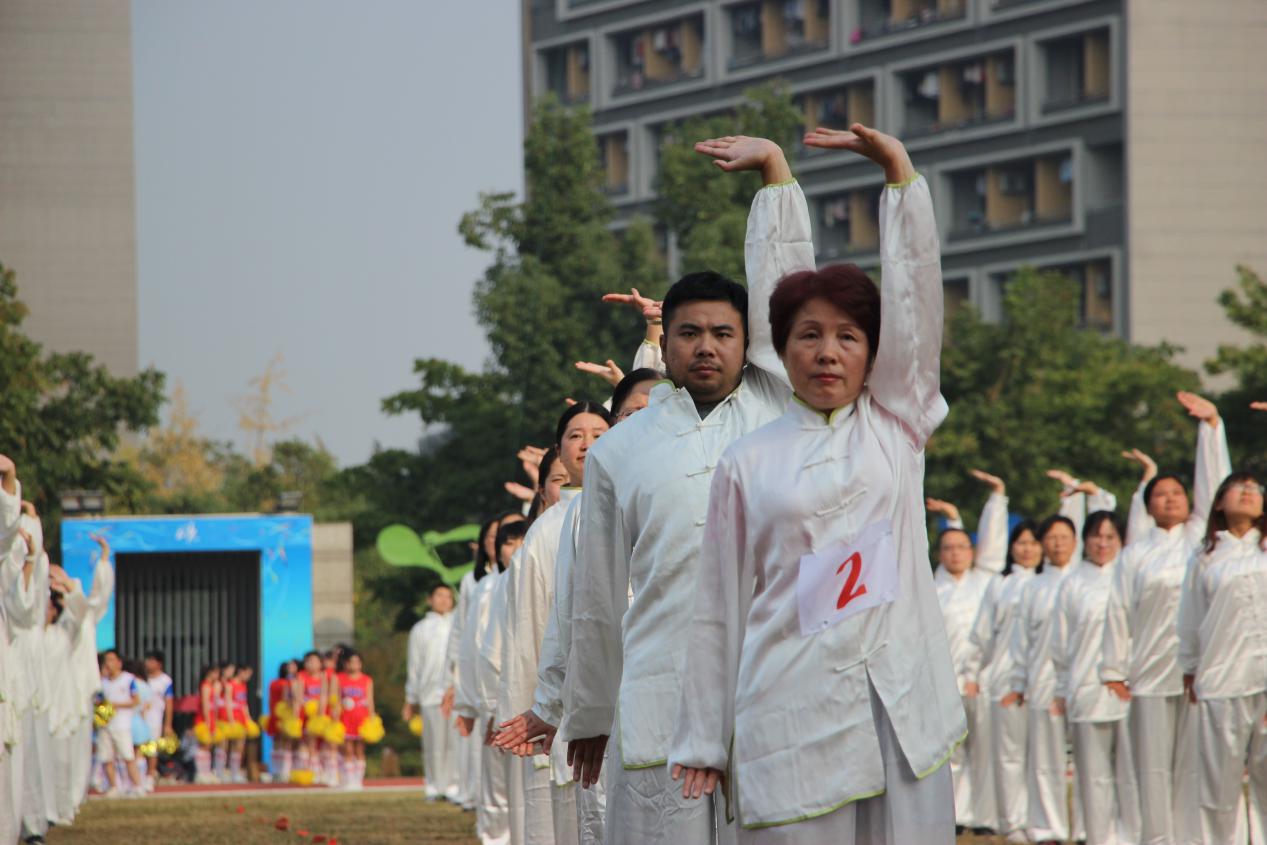 2018年10月24日13:30,我校第39届田径运动会在仓前校区体育场隆重开幕。在我校党委书记陈春雷宣布开幕式结束后,团体操表演开始,而首先进入场地的便是由小黄书 教职员工参与组成的表演《八段锦》的教工群体。