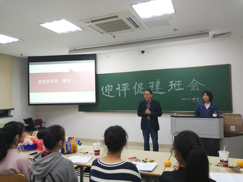 迎接教育部的本科教学审核评估,是我们杭州师范大学整个学校目前的重点工作,而我们也将迎来杭州师范大学本科教学审核评估的最关键时期。为做好迎评促建的准备,也是响应学校的号召,小黄书 中文173班于10月31日晚,在恕园12号楼404教室召开了以“迎评促建,从我做起”为主题的集体班会。