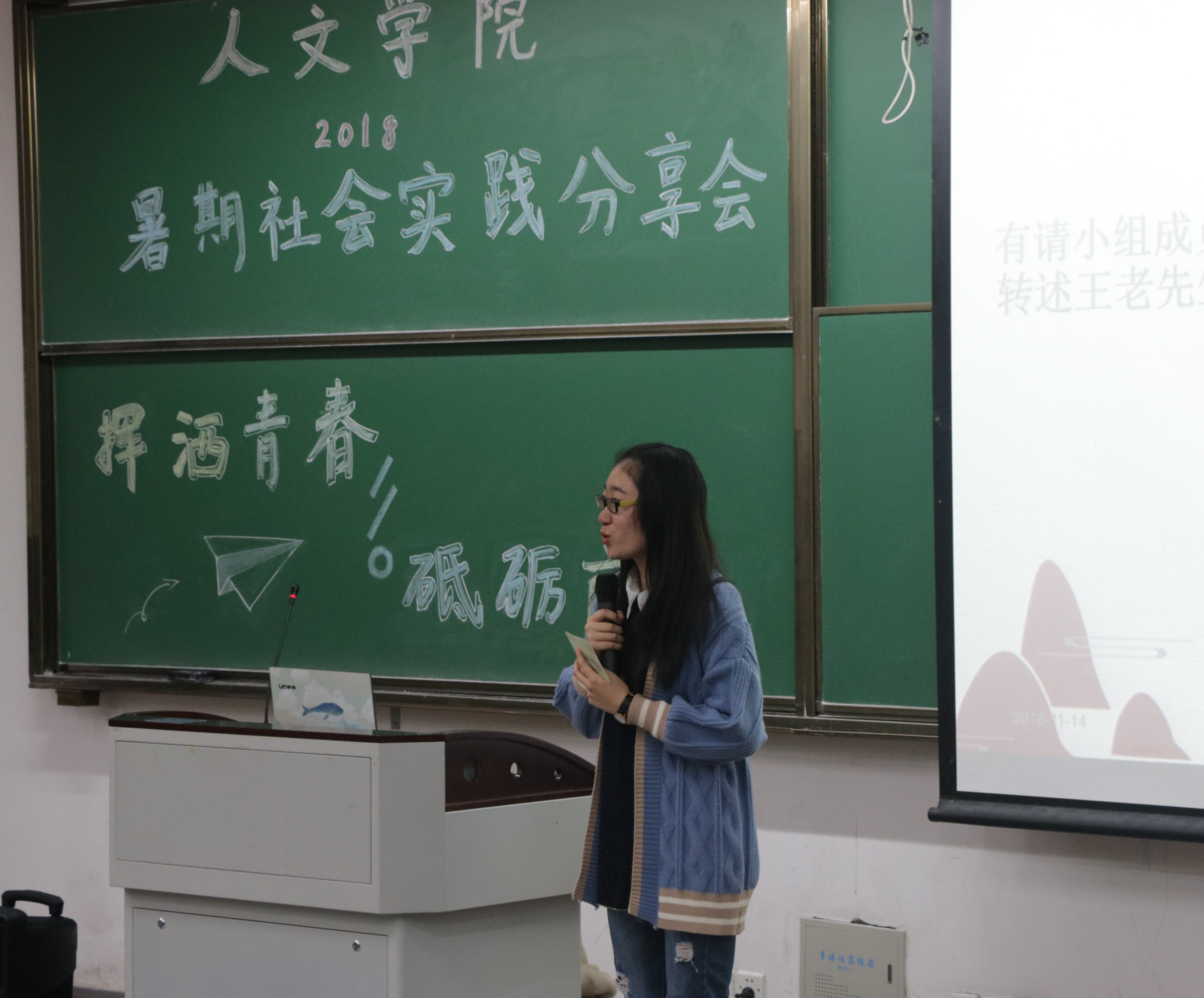 为了让更多的同学了解小黄书 社会实践活动的特色,总结过去一年中社会实践活动的得与失,小黄书 于2018年11月14日14:30在恕园13号楼101教室举办了以“挥洒青春,砥砺前行”为主题的小黄书 2018年暑期社会实践分享会。小黄书 党委副书记管庆江老师、团委老师孔祥亮老师出席本次分享会并担任评委。出席本次会议的还有校青协副主席及社会实践部同学。