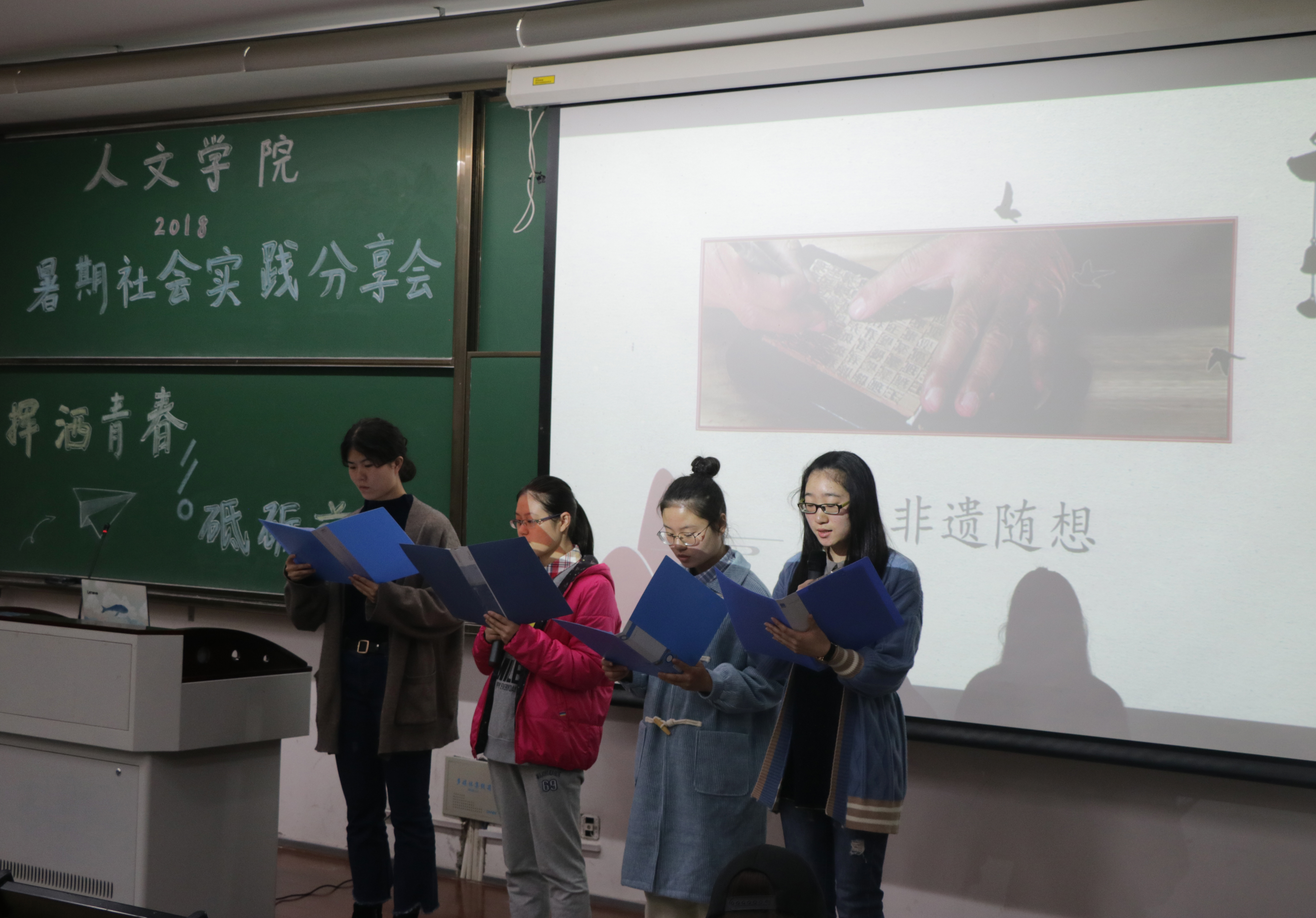 播放完介绍社会实践团队的视频后,分享会进入社会实践团队介绍、展示和评比的环节,各评比团队一一上台展示。