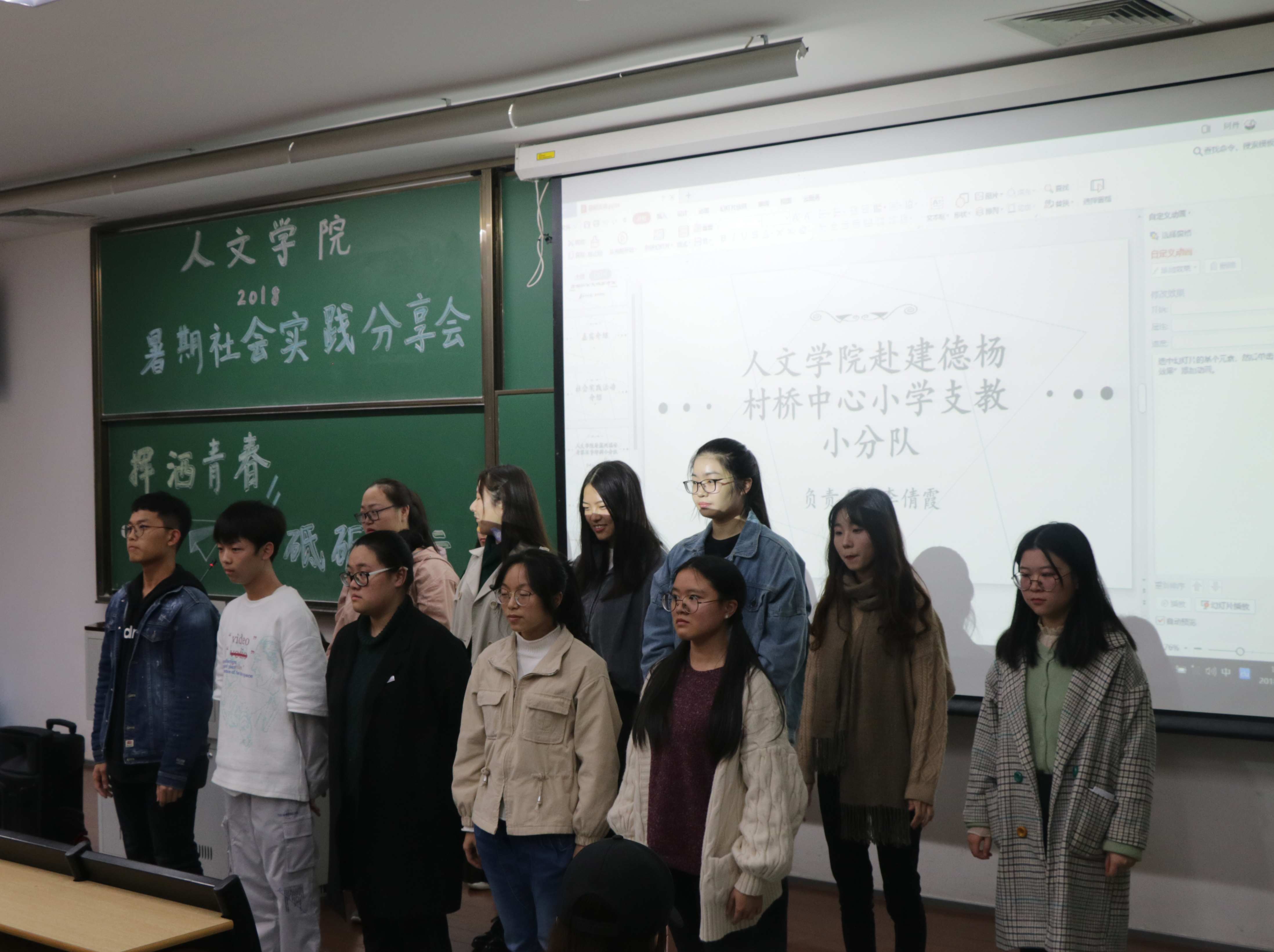 小黄书 赴建德杨村桥中心小学支教小分队负责人李倩霞展示了支教的过程。28名成员组成的支教小分队,陪伴孩子们成长,给孩子们带来了温暖。支教生活给小分队留下了深刻的印象,虽然艰苦但也有所体会,有所成长。在刘晓伟老师的带领下,支教小分队连续12年支教,“因为真心相待,所以温暖”,彼此间心灵的温暖,留下了最大的感动。最后,小分队的成员们一起表演了支教小分队的传统节目《感恩的心》,队员们的认真与真心,让人不禁动容。