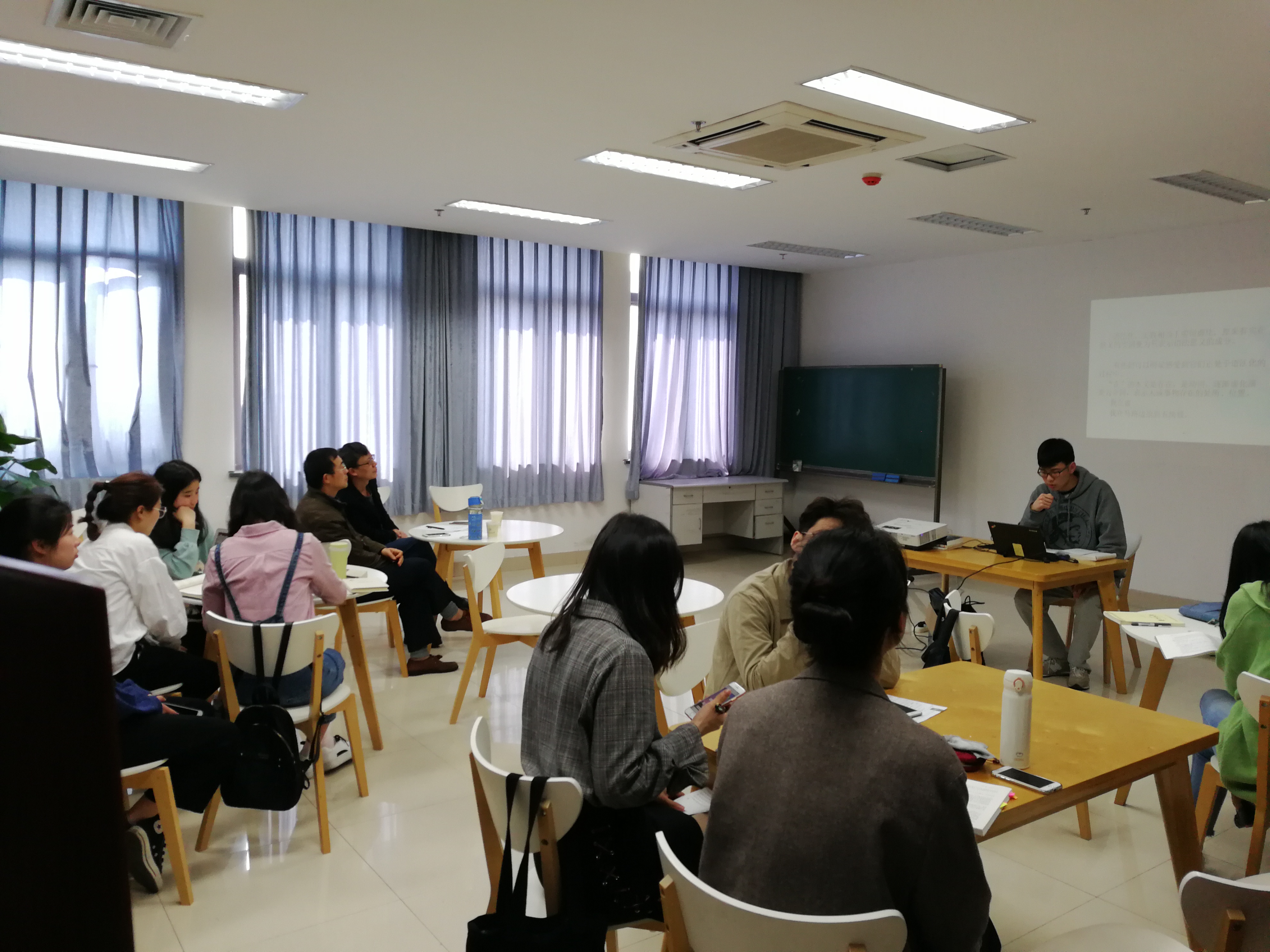 20日下午,文学场读书会与语言学场同时进行。文学场共有8名同学报告,每位同学汇报结束后,徐大军、郭洪雷两位评议老师都给出了简约而专业的建议。两位老师提醒同学们要转变知识接受者的身份,去不断思考问题、解决问题,也给同学们带来了很多思考问题的新视角,尤其提出了以小见大、顺藤摸瓜的理念,对在场的所有同学都有所启发。语言学场共有6名同学就自己所选的主题进行了报告,孙宜志、陆忠发两位老师对如何进一步在读书中发现可深入分析的题目进行了指导,并指出,读后报告一定要有自己的体会和启发,要善于发现问题,将自己领会到的知识应用到实际学习中以及今后的论文写作中。