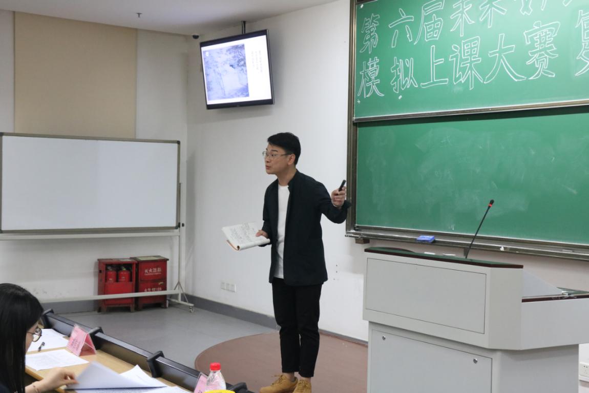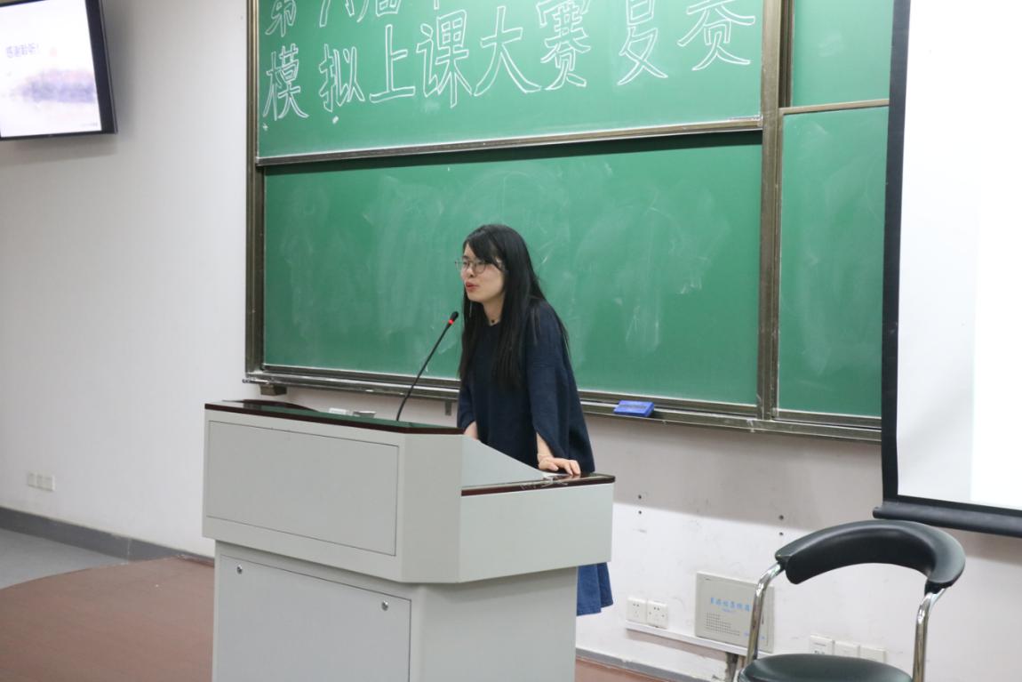 模拟讲课环节上,各选手依次上台进行讲课展示,他们用丰富的教学设计内容、遒劲有力的板书展示和制作精美的课件,将一个个别开生面的课堂带到现场,收获了在座同学的阵阵掌声。