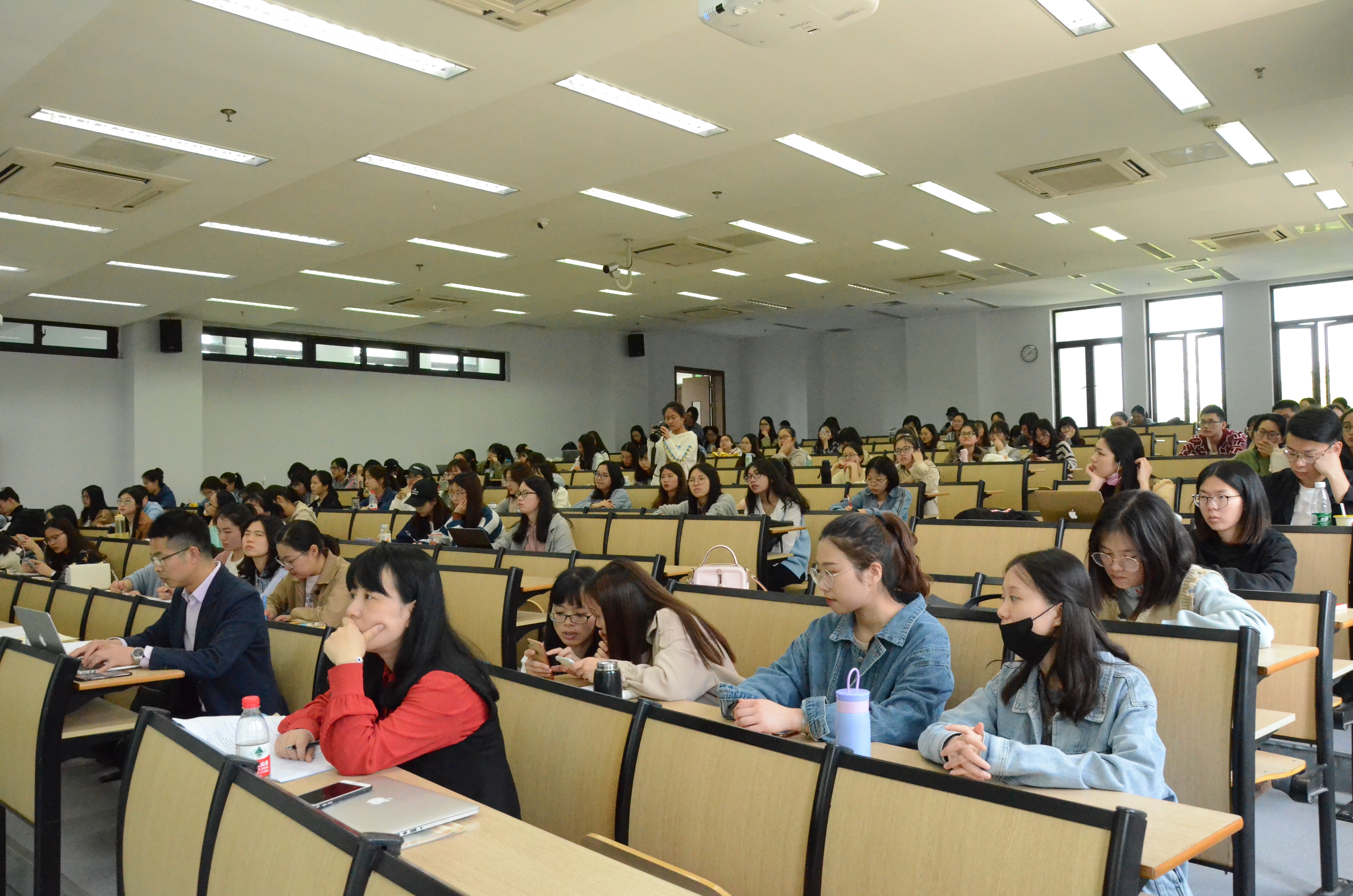 5月8日下午,“名师工作室进课堂”主题活动在恕园31号201室举行。杭州市文澜中学的潘素文老师和沈华老师带着各自的工作室成员和中文系同学进行同课异构式的模拟上课,课后,潘素文、沈华老师与小黄书 叶黎明老师进行了精彩的点评。
