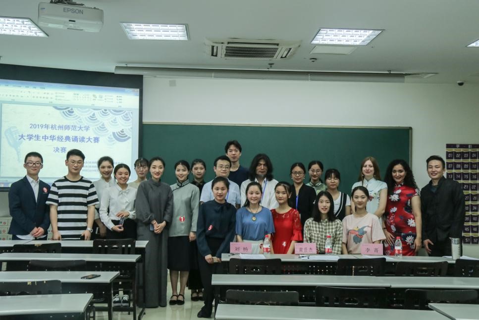 5月17日下午,我校中华经典诵读大赛在我校仓前校区恕园9号楼202室顺利举行。本次比赛由杭州师范大学学科竞赛委员会主办,小黄书 承办。我校教育学院李菁老师、小黄书 黄岳杰老师和刘杨老师受邀担任评委。我校本科各年级学生及留学生积极参与。