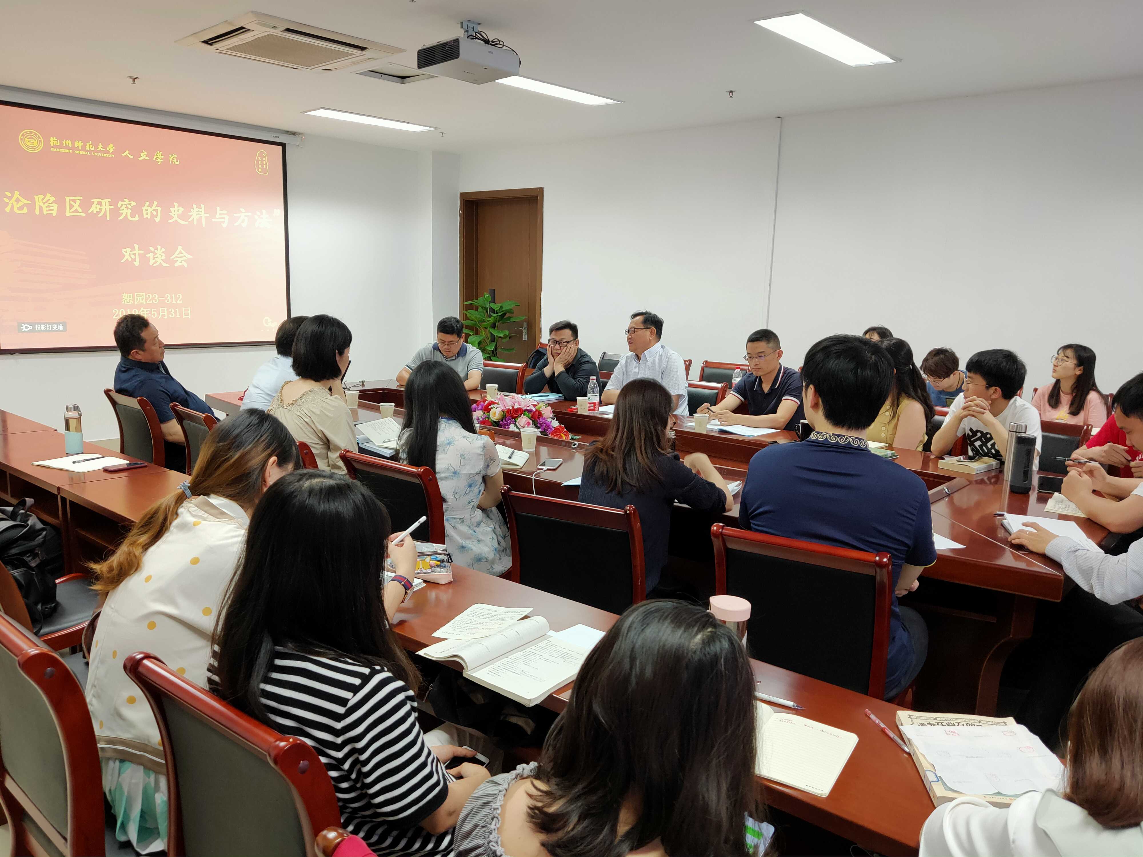 为纪念毛泽东《研究沦陷区》一文发表80周年,2019年5月31日下午应浙江省民国史研究中心教授、浙江省之江社科青年历史组(第二批)召集人、章太炎故居“太炎讲堂”主持人周东华教授邀请,中国社会科学院近代史研究所研究员、《抗日战争研究》主编高士华、北京大学历史学系教授臧运祜、南开大学历史学院院长江沛等在恕园23-312会议室举行“沦陷区研究的史料与方法”对谈会,浙江省民国史研究中心薛玉琴教授、南京师范大学社会与发展学院叶铭、中国人民大学博士郝昭荔等以及中国史研究生和本科生30余人参加对谈讲座。