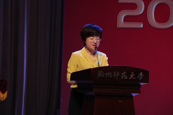 毕业生代表沈艳上台发言,回顾了四年的大学生活,分享了自己在师大的成长与感悟,表示了对老师以及一同前行的同学们的感谢,并祝愿同学们踏上新的征程,实现心中理想。研究生代表方桂林也感谢了学院各位老师同学,通过讲述自己的故事,与在座的同学们分享了选择的力量与重要性,并祝福同学们在自己选择的道路上不断前行。杭州书锦教育有限公司董事长朱小莉作为用人单位代表感谢学院对人才的培养,并向学院赠送了毕业礼物。毕业生家长代表邓艳云发言,感谢了老师们对孩子的照顾与帮助,并对孩子的成长与未来报以了真诚的期盼与祝福。