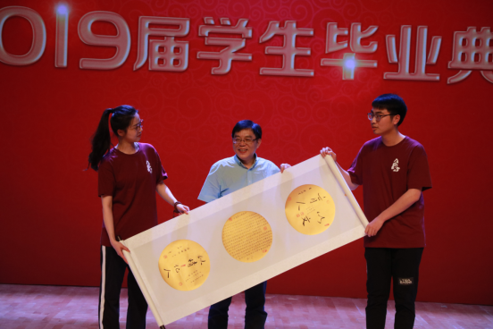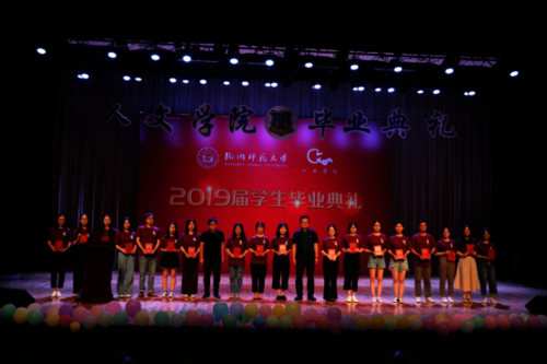 典礼在国歌奏唱声中拉开帷幕。院长洪治纲教授在典礼上激情寄语毕业生,代表学院接受了毕业生向学院赠送的书法作品,同时现场为毕业生签名赠书。诸英书记宣读了2019届优秀毕业生名单,共有18名本研毕业生获得省级优秀毕业生,61名同学获得校级优秀毕业生。领导班子成员与教师代表为优秀毕业生代表颁发了证书,表彰了11位捐赠书籍优秀代表和为11名校友联系人颁发了聘书。